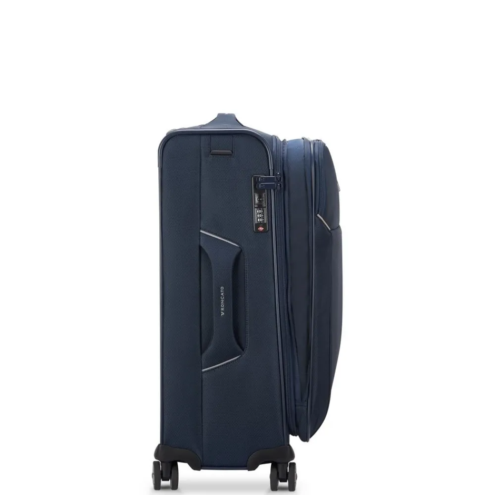 Trolley medio Roncato Ironik 2.0 5302. Trolley realizzato in robusto nylon e poliestere, 4 grandi ruote gemellari piroettanti per la massima scorrevolezza, carrello di traino in alluminio con push botton, ampia tasca frontale chiusa da zip, maniglia di servizio superiore e laterale, portaindirizzo integrato sul fianco. Sistema di chiusura a tripla combinazione con sistema TSA per gli Stati Uniti. Zip di espansione che consente di aumentare la capacità a seconda delle necessità ! Internamente organizzato con nastri per bloccare l’abbigliamento e divisorio. Garanzia 3 anni.