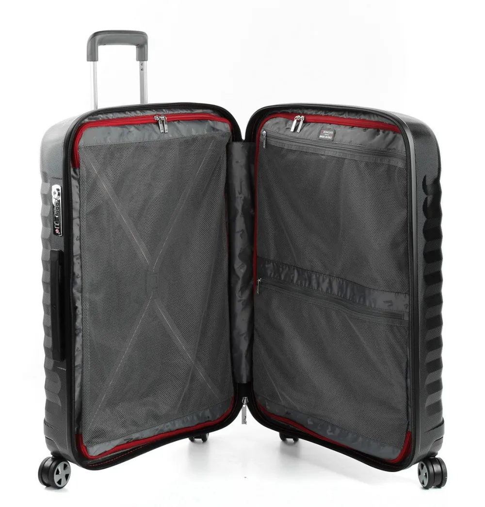 Trolley Roncato Uno ZSL Premium 2.0 medio 5465. Trolley realizzato in robusto policarbonato ultraleggero, 4 ruote doppie piroettanti per la massima manovrabilità , carrello di traino telescopico con push botton, chiusura a tripla combinazione con sistema TSA per gli Stati Uniti. Interno completamente foderato con divisorio, facile da rimuovere per la pulizia. Made in Italy – Garanzia 10 anni.