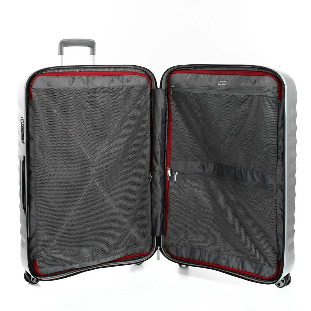 Trolley Roncato Uno ZSL Premium 2.0 medio plus 5466. Trolley realizzato in robusto policarbonato ultraleggero, 4 ruote doppie piroettanti per la massima manovrabilità , carrello di traino telescopico con push botton, chiusura a tripla combinazione con sistema TSA per gli Stati Uniti. Interno completamente foderato con divisorio, facile da rimuovere per la pulizia. Made in Italy – Garanzia 10 anni.