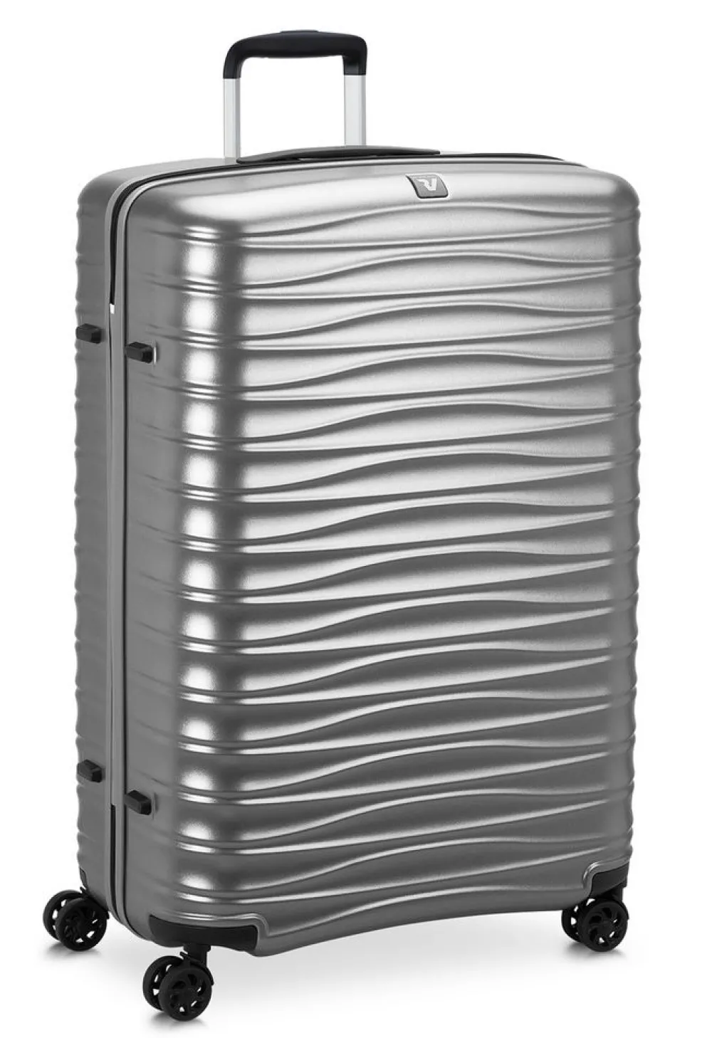 Trolley Roncato Wave grande 9721. Trolley realizzato in robusto policarbonato/ABS, carrello telescopico con push botton, 4 ruote piroettanti doppie. Chiusura integrata con tripla combinazione TSA per gli Stati Uniti. Interno completamente foderato e organizzato. Garanzia 3 anni.