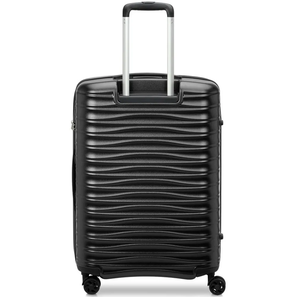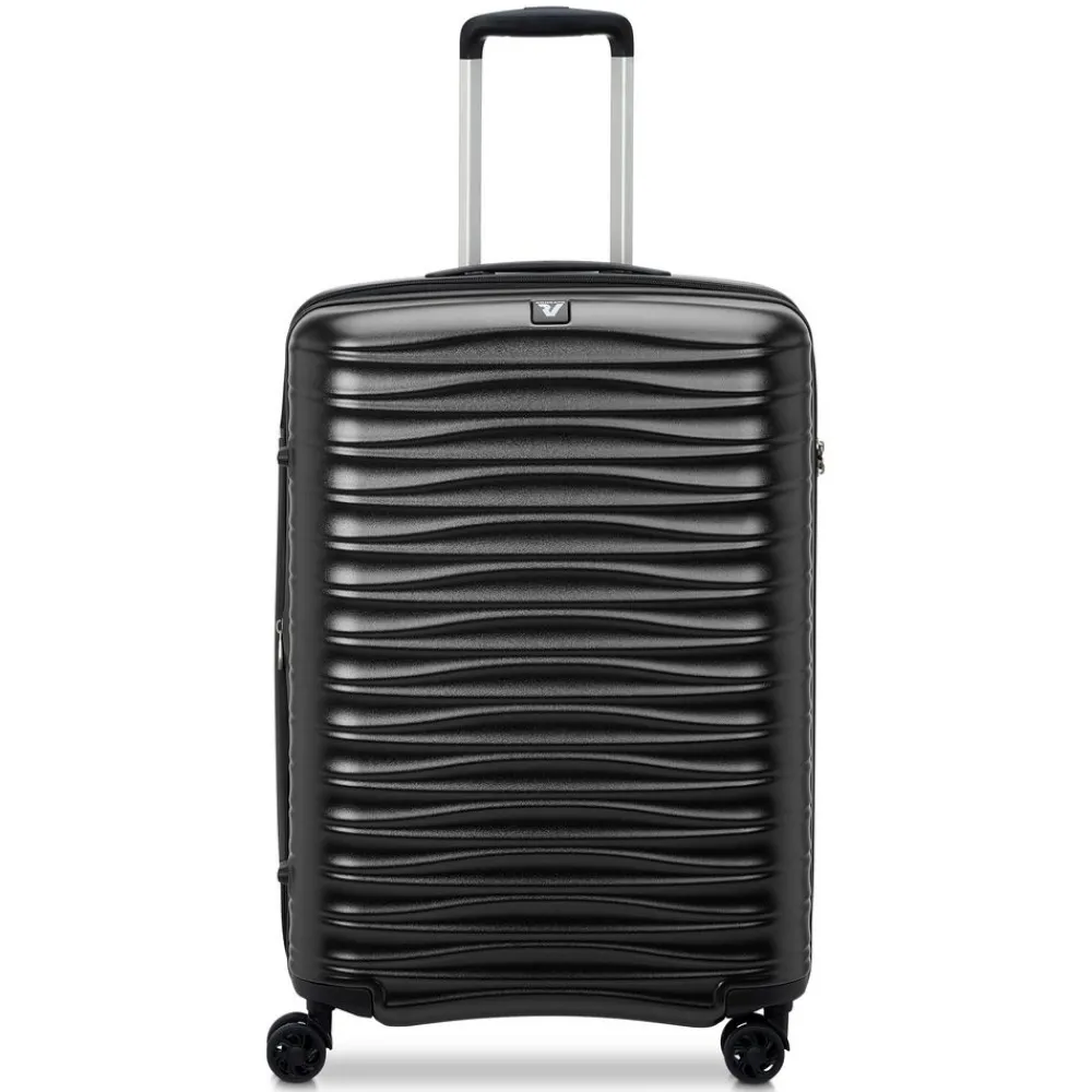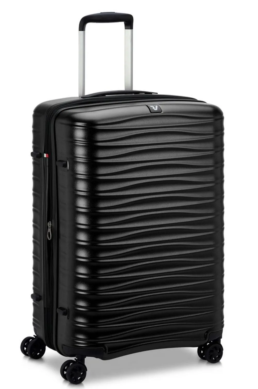Trolley Roncato Wave medio espandibile 9722. Trolley realizzato in robusto policarbonato/ABS, carrello telescopico con push botton, 4 ruote piroettanti doppie. Chiusura integrata con tripla combinazione TSA per gli Stati Uniti. Interno completamente foderato e organizzato. Zip di espansione. Garanzia 3 anni.