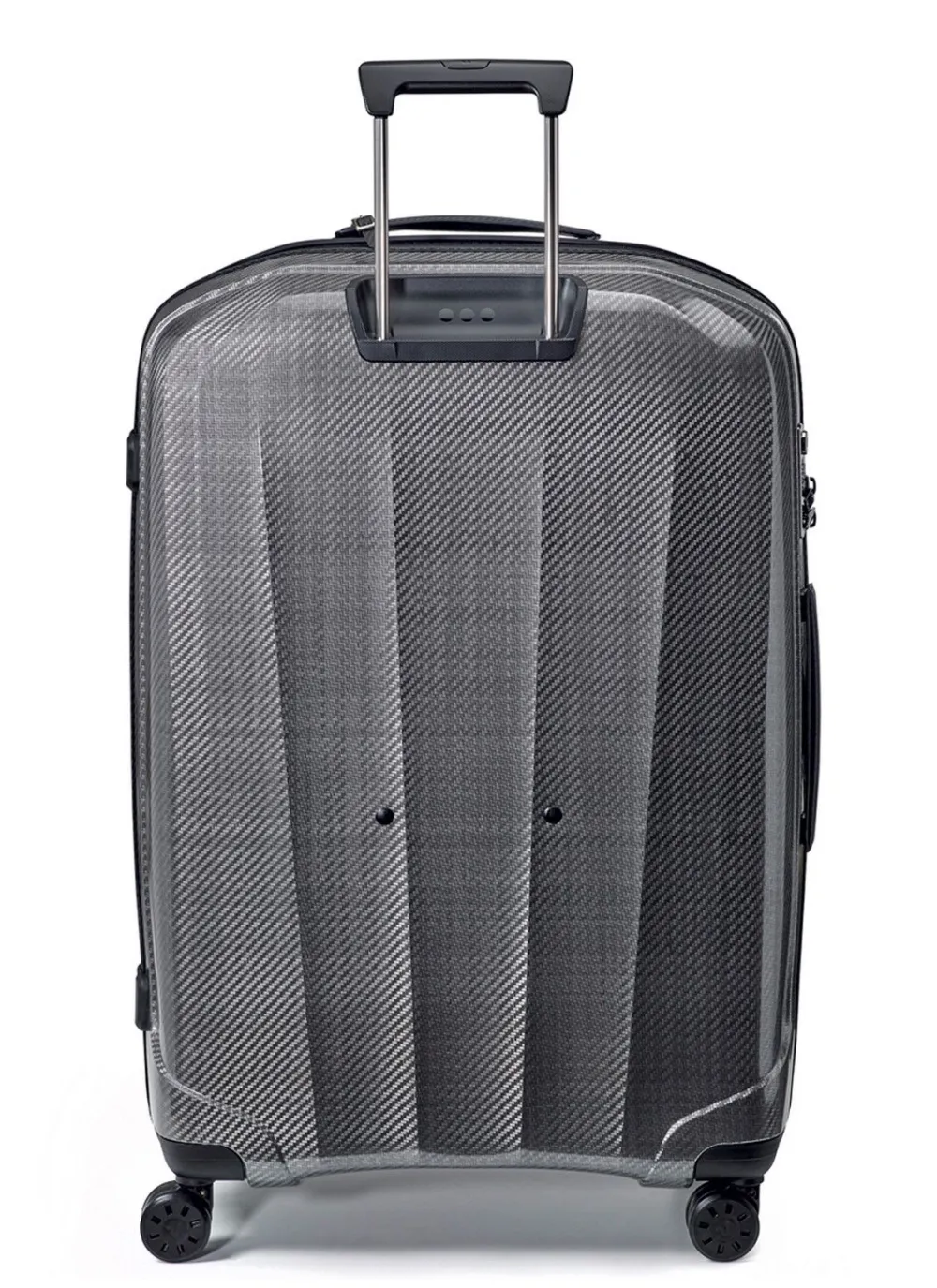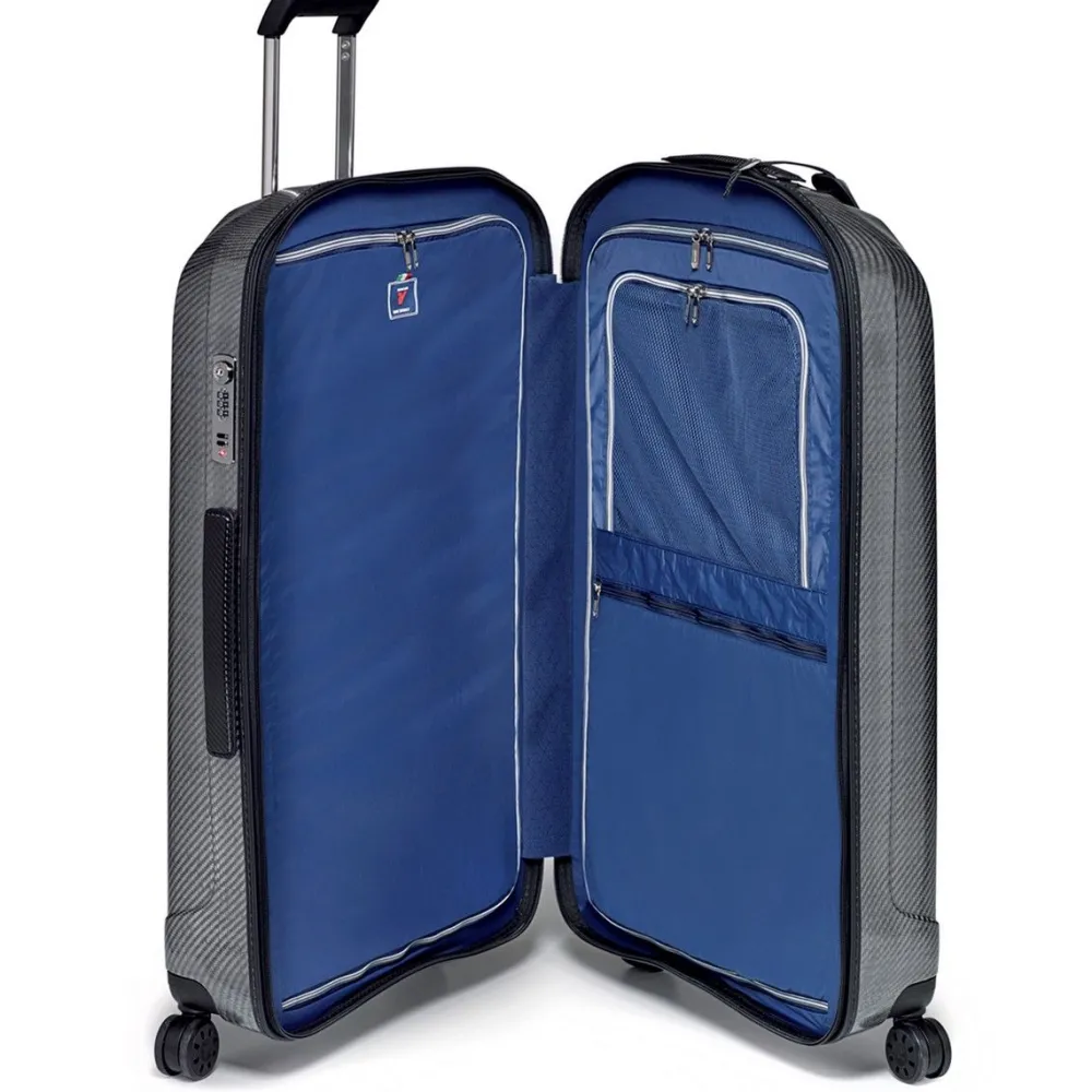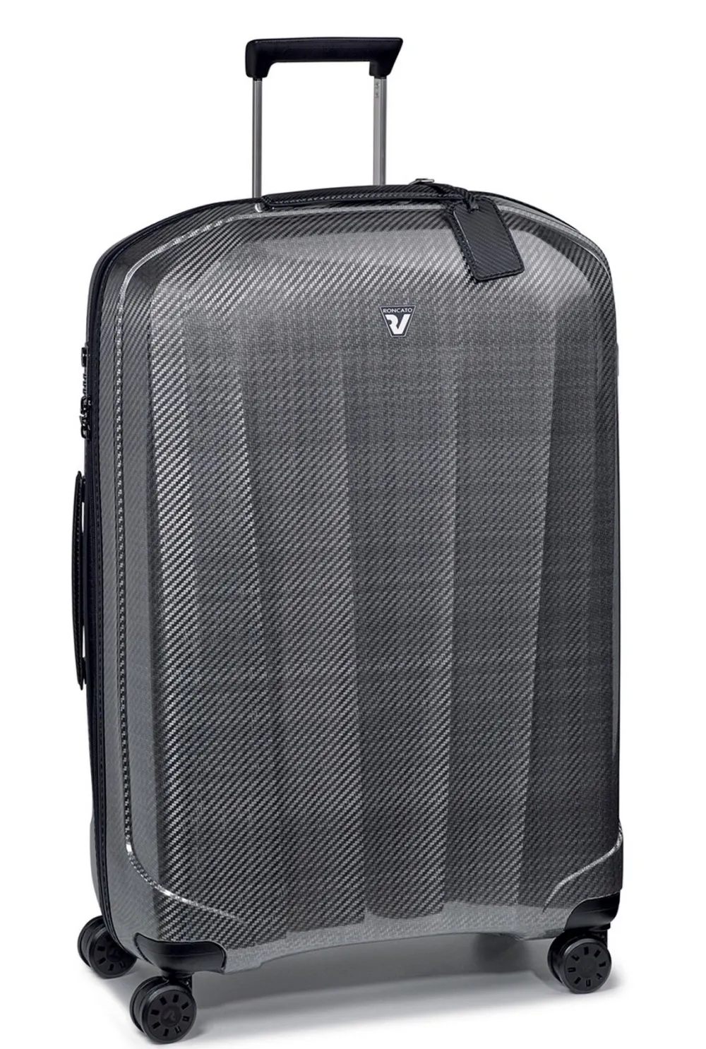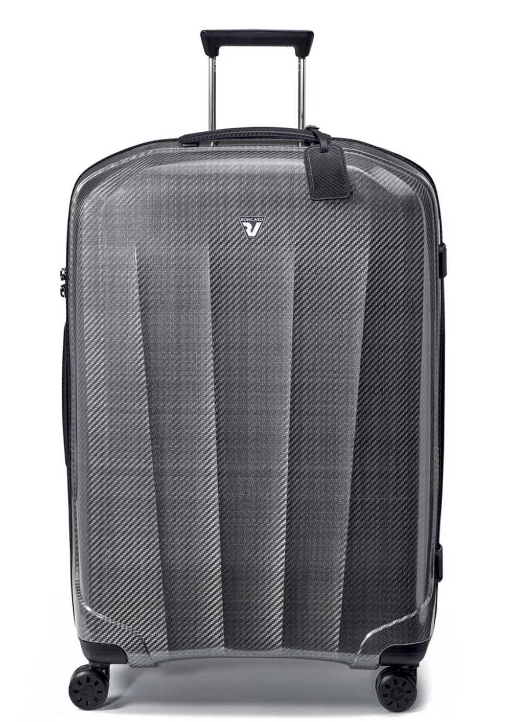 Trolley Roncato We Are Glam grande 5951. Trolley realizzato in robusto Matrix PP compressed, 4 ruote doppie piroettanti per la massima manovrabilità , carrello di traino telescopico con push botton, chiusura a tripla combinazione con sistema TSA per gli Stati Uniti. Chiusura con doppia zip resistente ai tentativi di effrazione. Interno completamente foderato con divisorio e tasche per piccoli oggetti. Made in Italy – Garanzia 10 anni.
