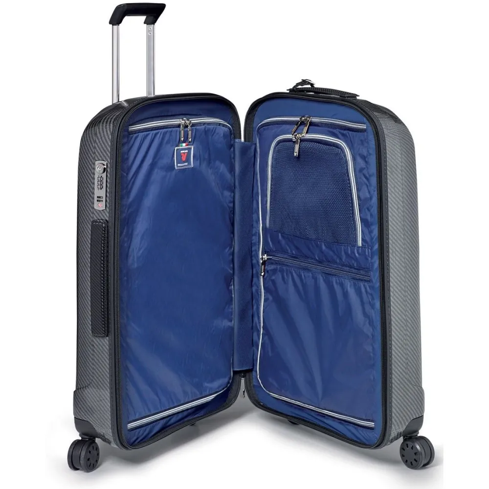 Trolley Roncato We Are Glam medio 5952. Trolley realizzato in robusto Matrix PP compressed, 4 ruote doppie piroettanti per la massima manovrabilità , carrello di traino telescopico con push botton, chiusura a tripla combinazione con sistema TSA per gli Stati Uniti. Chiusura con doppia zip resistente ai tentativi di effrazione. Interno completamente foderato con divisorio e tasche per piccoli oggetti. Made in Italy – Garanzia 10 anni.