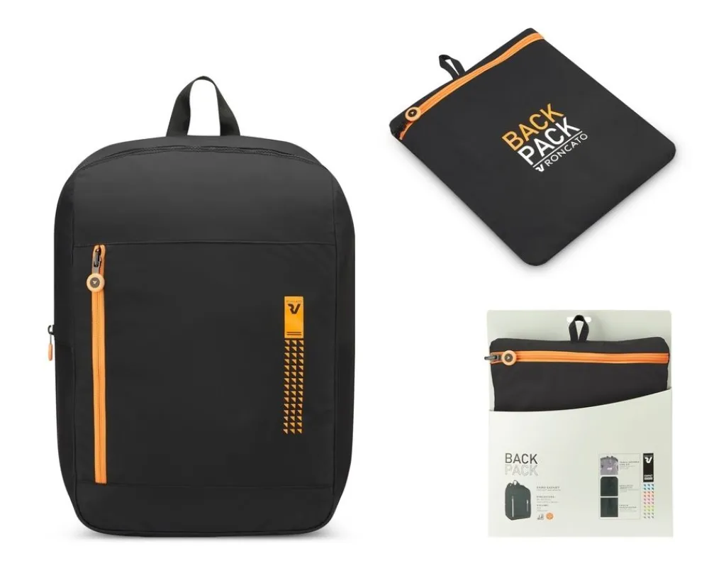 Zaino cabina pieghevole 45x36x20 Roncato Compact 2012. Zaino realizzato in robusto poliestere, spallacci gommati per il massimo confort, maniglia superiore. Ampia tasca principale con tasca interne, tasca frontale chiusa da zip. Tasca interna chiusa da zip. Questo bagaglio è realizzato per l’utilizzo come bagaglio a mano Easyjet 45x36x20. Garanzia 3 anni.
