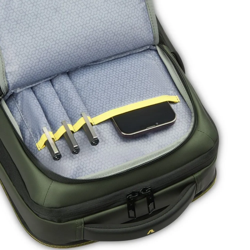 Zaino in pelle Roncato Trial DLX 1141. Zaino realizzato in pelle di alta qualità . Ampia tasca principale chiusa da zip, con tasca interna gommata per notebook 15,6″ e tablet. Tasca frontale chiusa da zip. Passante asta trolley. Spallacci gommati e regolabili.