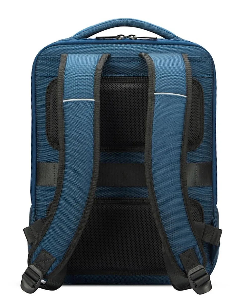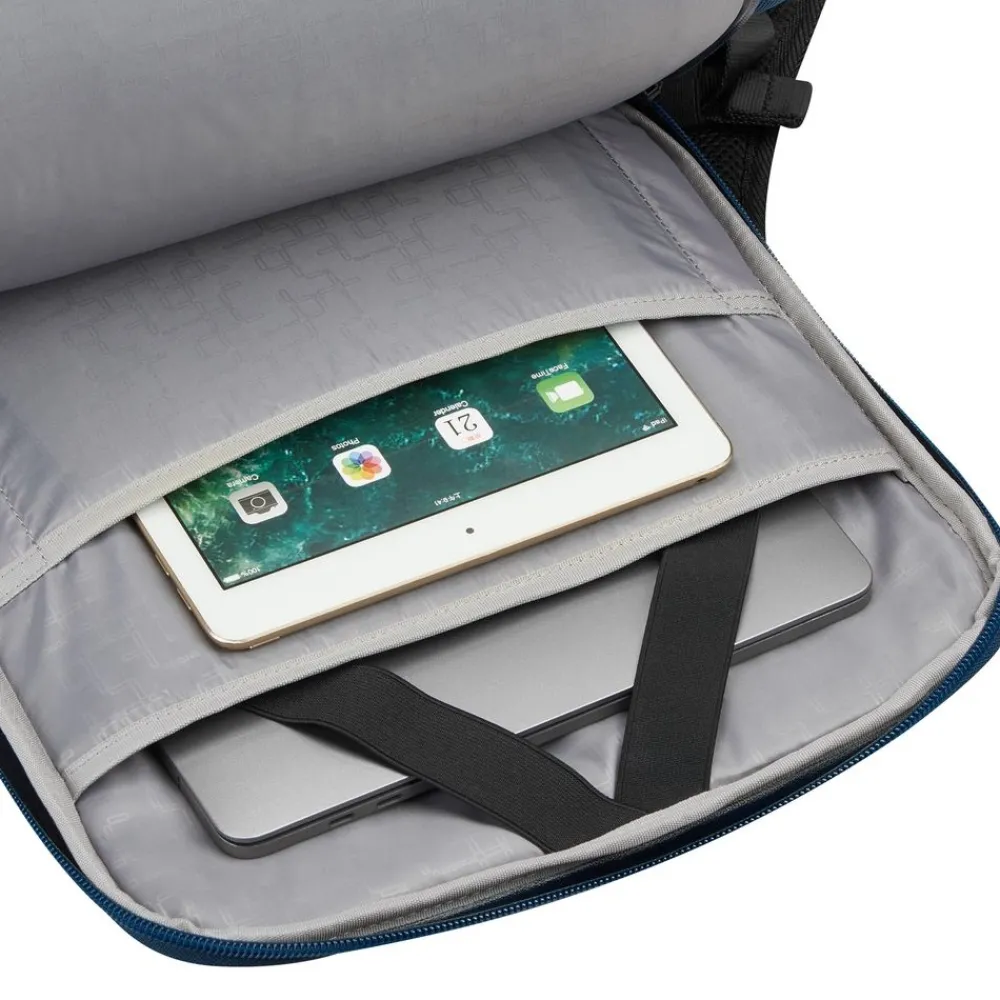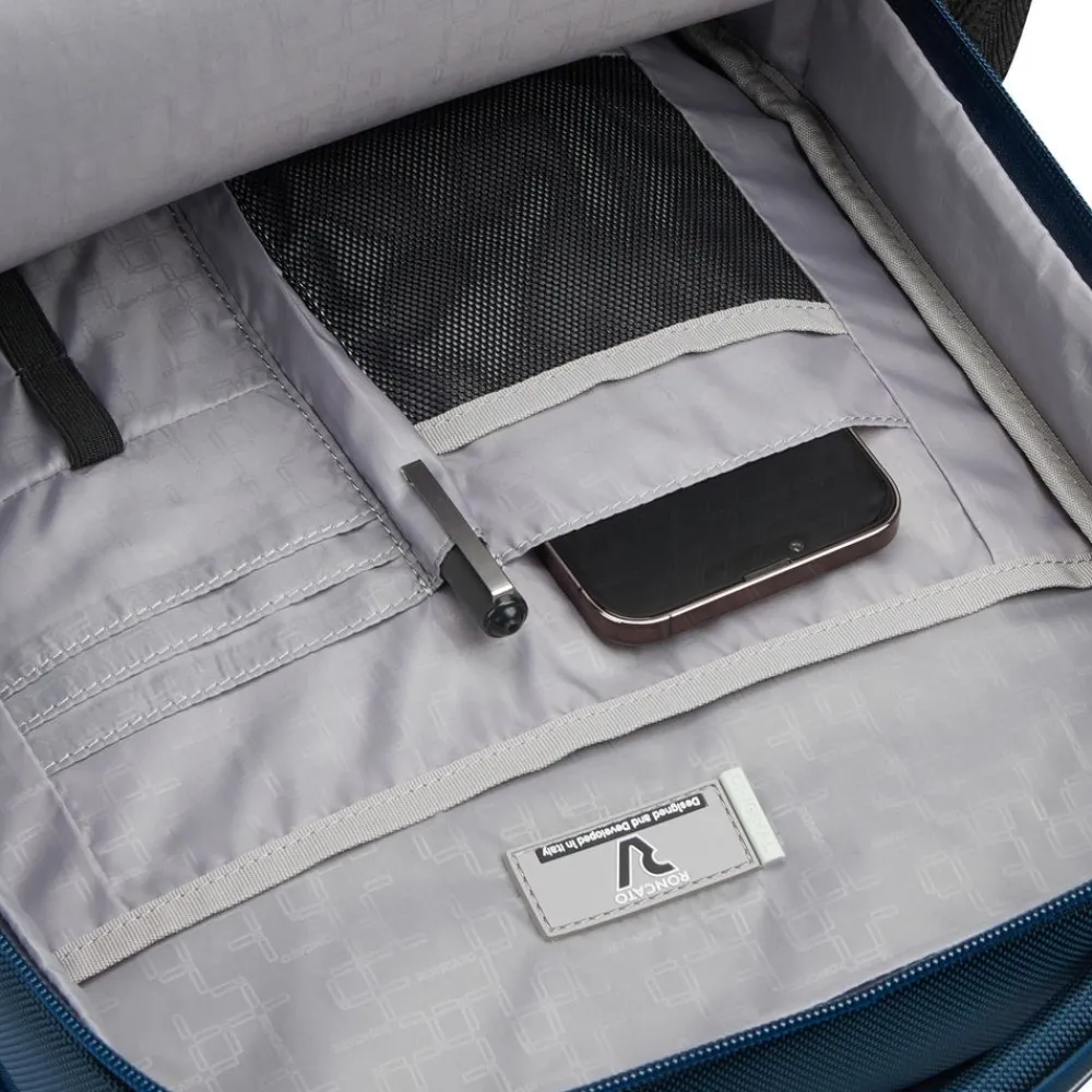 Zaino S 14″ Samsonite Ecodiver. Zaino realizzato in robusto, materiale gommato 100% riciclato e resistente all’acqua, confortevole maniglia superiore, spallacci gommati e schienale traspirante, ampia tasca principale con comparto laptop 14″ e tablet. Tasca frontale chiuse da zip. Cintura sternale regolabile in altezza. Passante asta trolley.