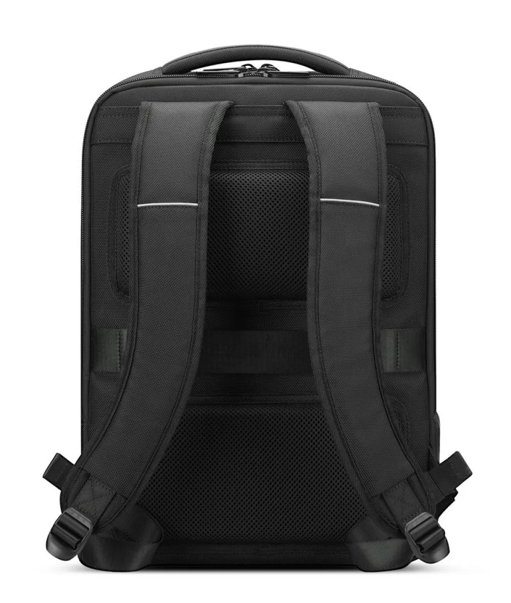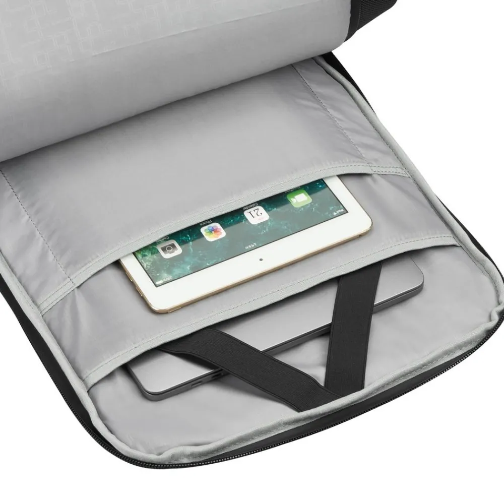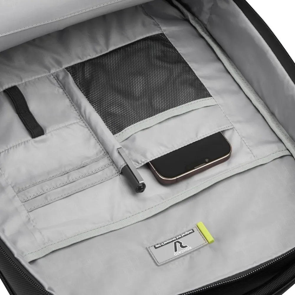 Zaino lavoro 14″ Roncato Trial 2246. Realizzato in robusto nylon e poliestere, spallacci e schienale gommati e traspiranti. Due tasche principali con vano porta pc 14″ e tablet, tasca frontale. Passante asta trolley posteriore. Maniglia superiore. Garanzia 3 anni.