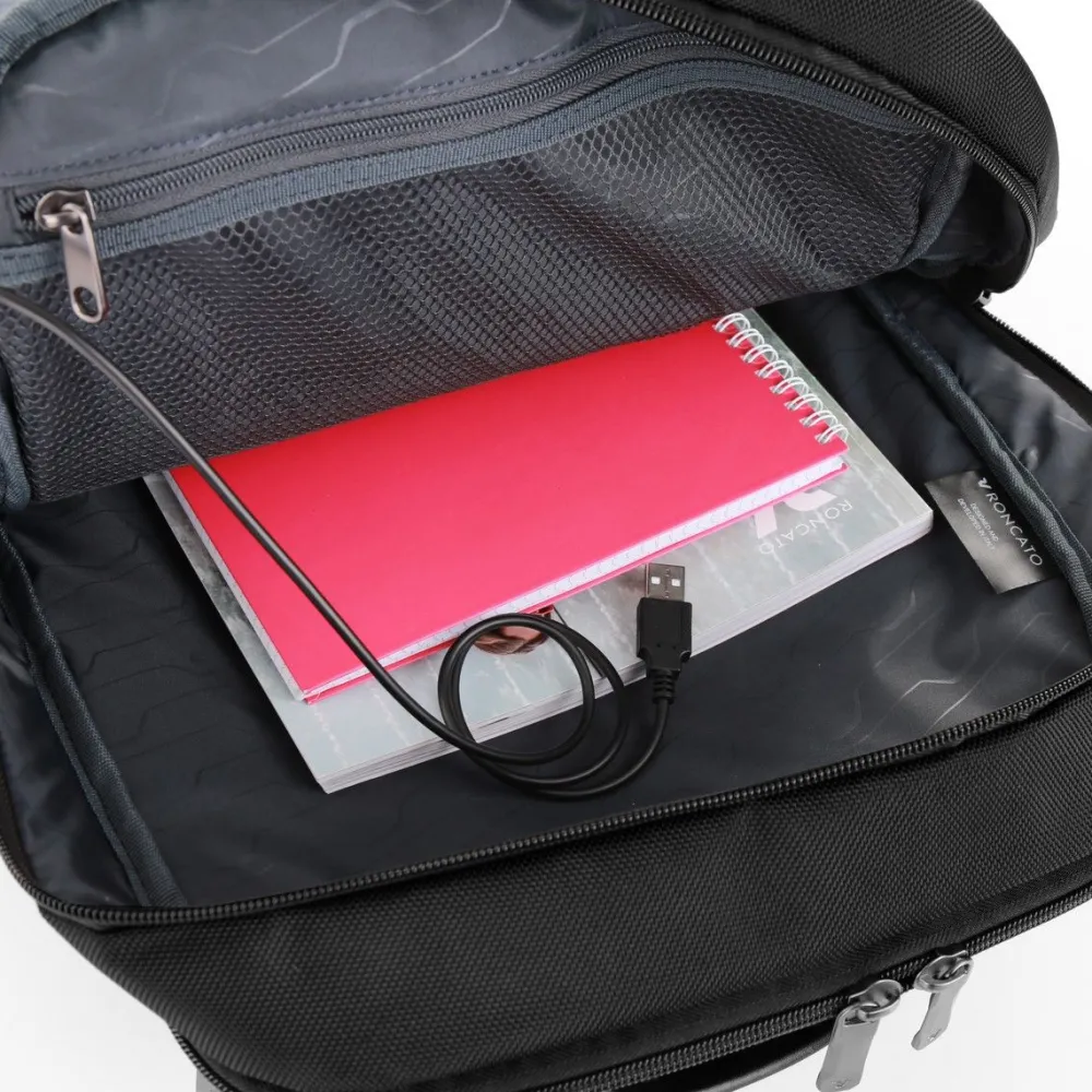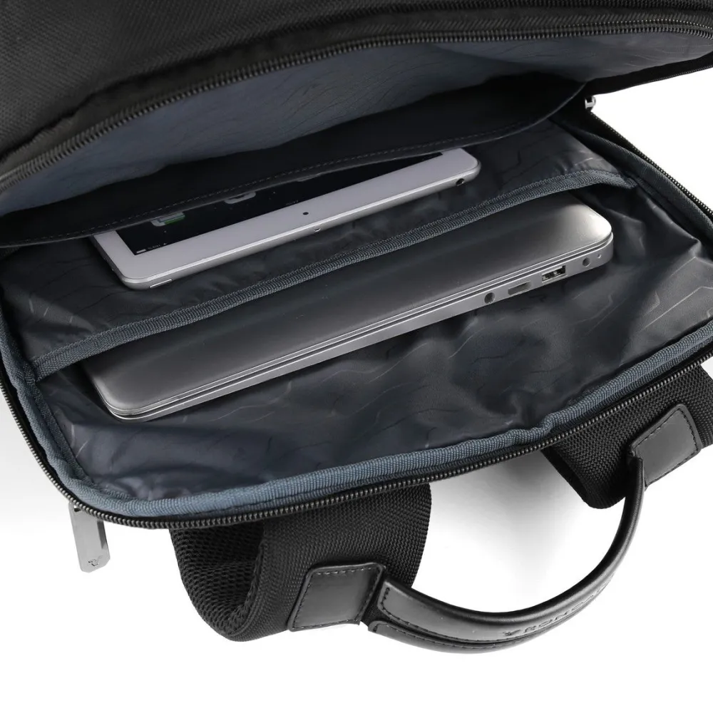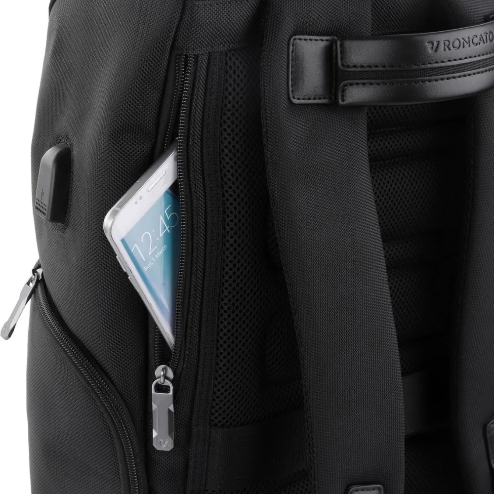 Zaino lavoro porta pc Roncato Biz 4.0 3885. Realizzato in robusto nylon, spallacci e schienale gommati e traspiranti. Tasca principale chiusa da zip, con ampia apertura superiore e vano porta pc 15,6″/tablet, organizzazione interna per piccoli oggetti. Maniglia superiore. Tasca frontale con organizzazione interna per documenti. Tasche laterali chiuse da zip. Passante asta trolley posteriore. Porta USB di ricarica integrata sul fianco. Garanzia 2 anni.