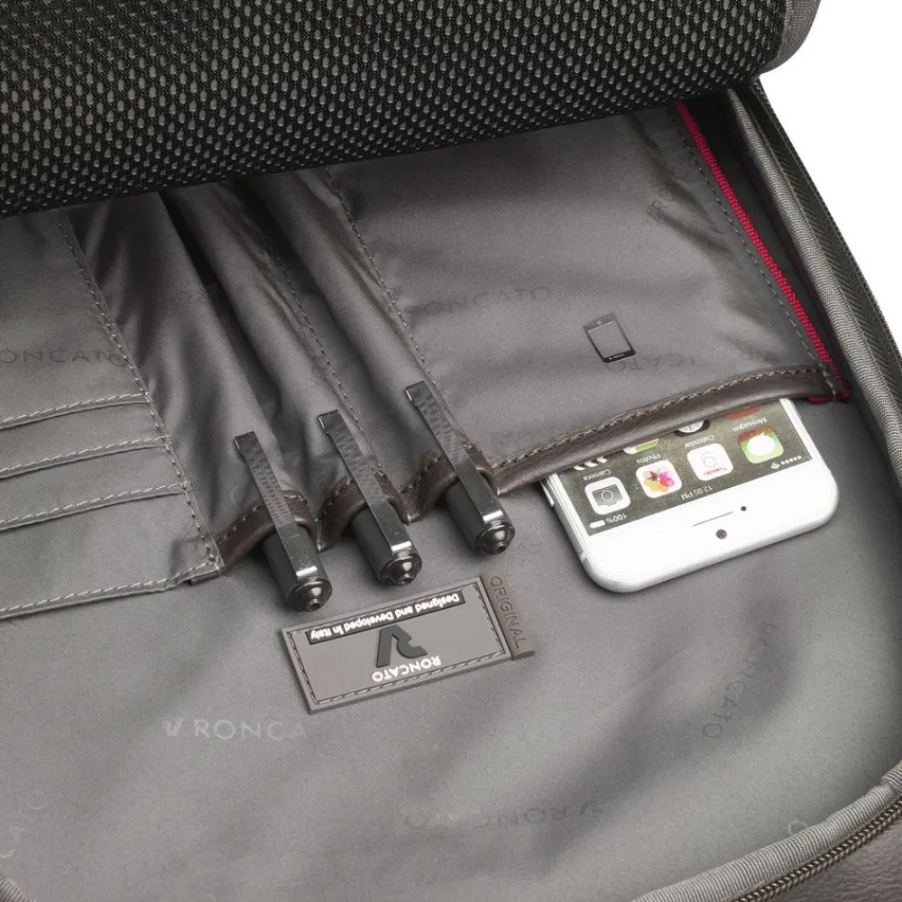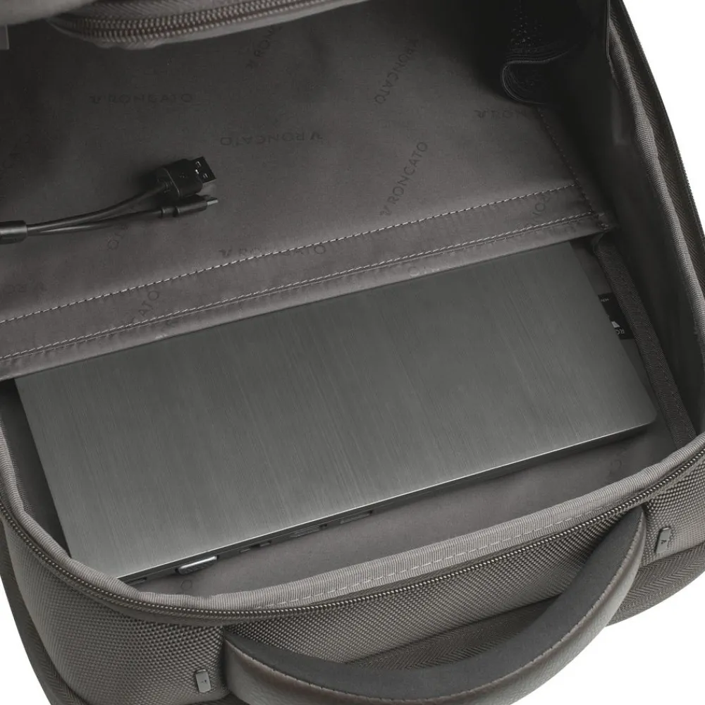 Zaino porta pc 15,6″ Roncato Panama 4.0 900. Realizzato in robusto nylon, spallacci e schienale gommati e traspiranti. Due tasche principali con vano porta pc 15,6″ e tablet, tasca frontale. Passante asta trolley posteriore. Porta USB di ricarica integrata. Maniglia superiore, tasca laterale. Garanzia 2 anni.