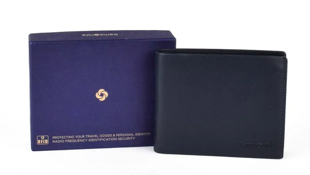 Portafoglio uomo Samsonite Attack 2 SLG 013. Realizzato in vera pelle di alta qualità , con vano portadocumenti, doppio vano portabanconote, tasca portamonete chiusa da bottone, ribalta portadocumenti chiusa con bottone. Protezione RFID. Logo Samsonite frontale.