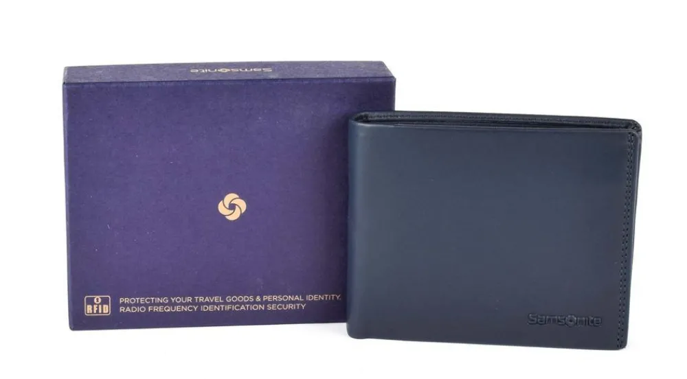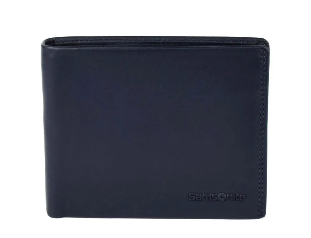 Portafoglio uomo Samsonite Attack 2 SLG 015. Realizzato in vera pelle di alta qualità , con vano portadocumenti, doppio vano portabanconote, tasca portamonete chiusa da bottone. Protezione RFID. Logo Samsonite frontale.