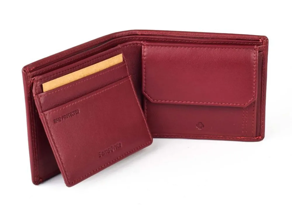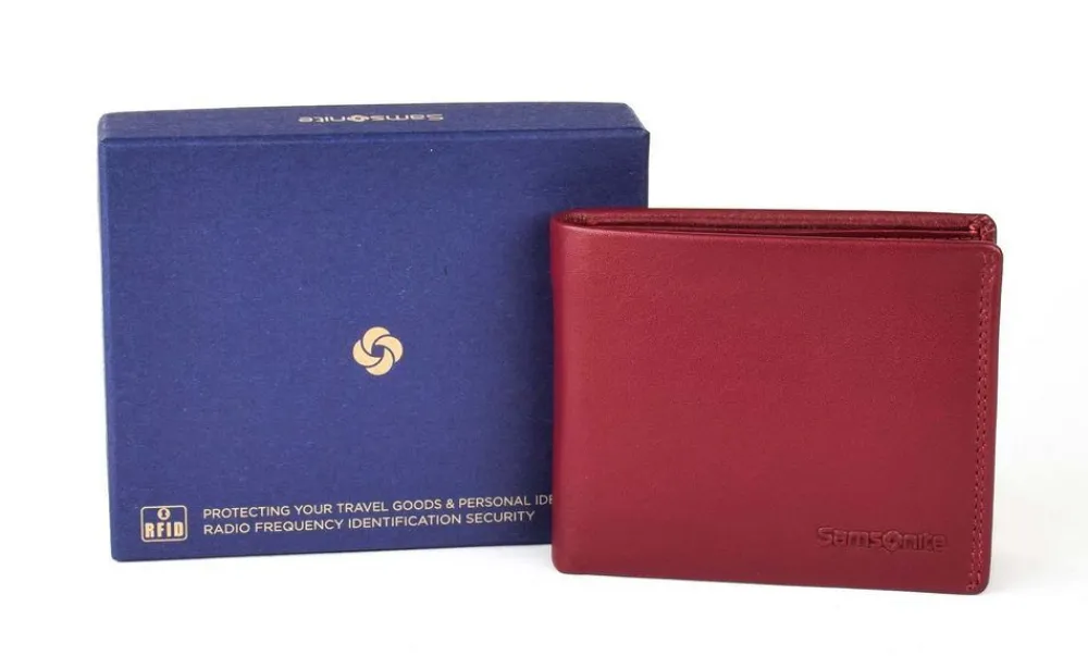 Portafoglio uomo piccolo Samsonite Attack 2 SLG 046. Realizzato in vera pelle di alta qualità , con vano portadocumenti, doppio vano portabanconote, tasca portamonete chiusa da bottone, ribalta portadocumenti. Protezione RFID. Logo Samsonite frontale.