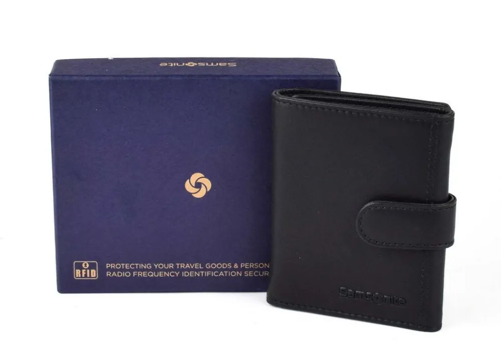 Portafoglio uomo piccolo Samsonite Attack 2 SLG 149. Realizzato in vera pelle di alta qualità , con vano portadocumenti, vano portabanconote, tasca portamonete chiusa da zip. Protezione RFID. Logo Samsonite frontale.
