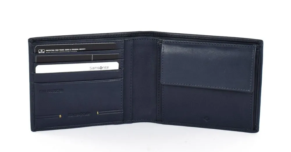 Portafoglio uomo Samsonite Simpla SLG 015. Realizzato in vera pelle di alta qualità , con vano portadocumenti, doppio vano portabanconote, tasca portamonete. Protezione RFID. Logo Samsonite frontale.