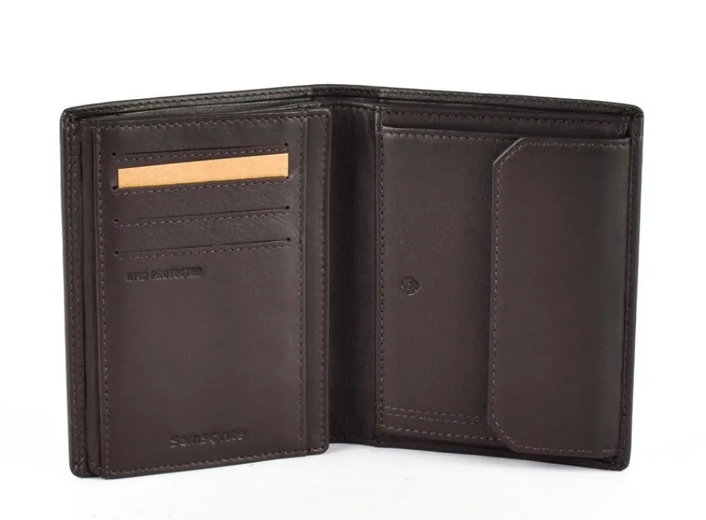 Portafoglio uomo verticale Samsonite Attack 2 SLG 150. Realizzato in vera pelle di alta qualità , con vano portadocumenti, doppio vano portabanconote, tasca portamonete chiusa da bottone, ribalta portadocumenti. Protezione RFID. Logo Samsonite frontale.