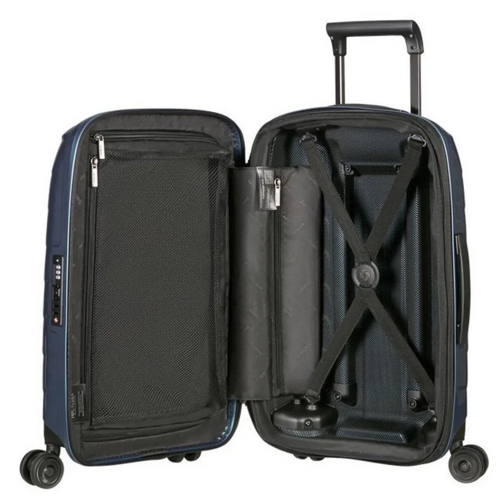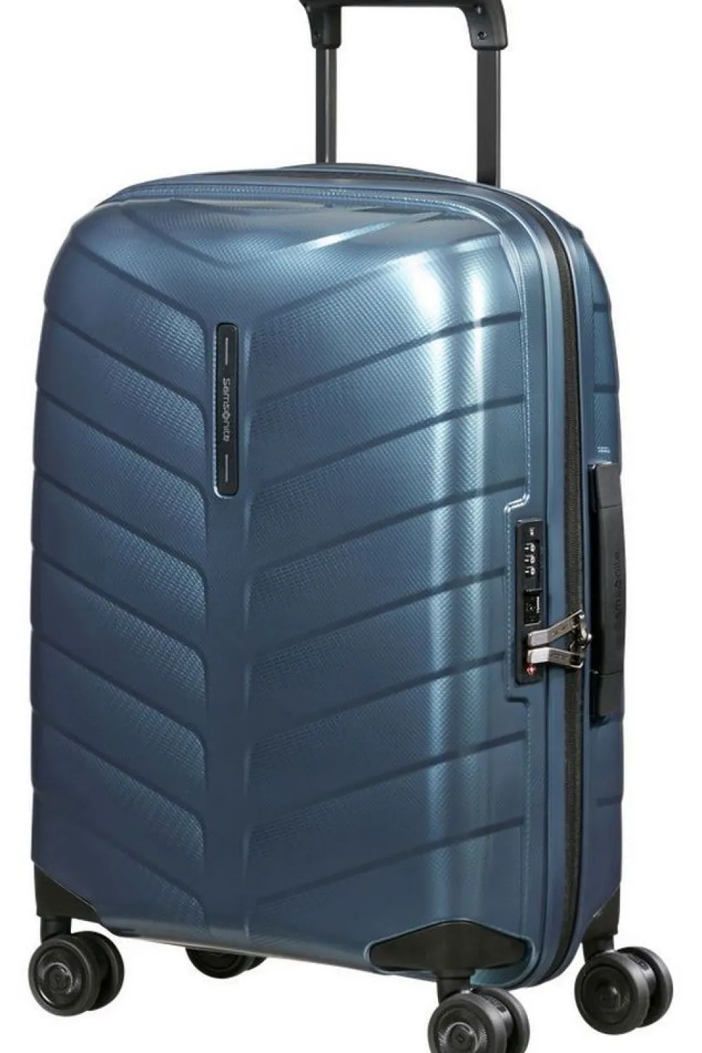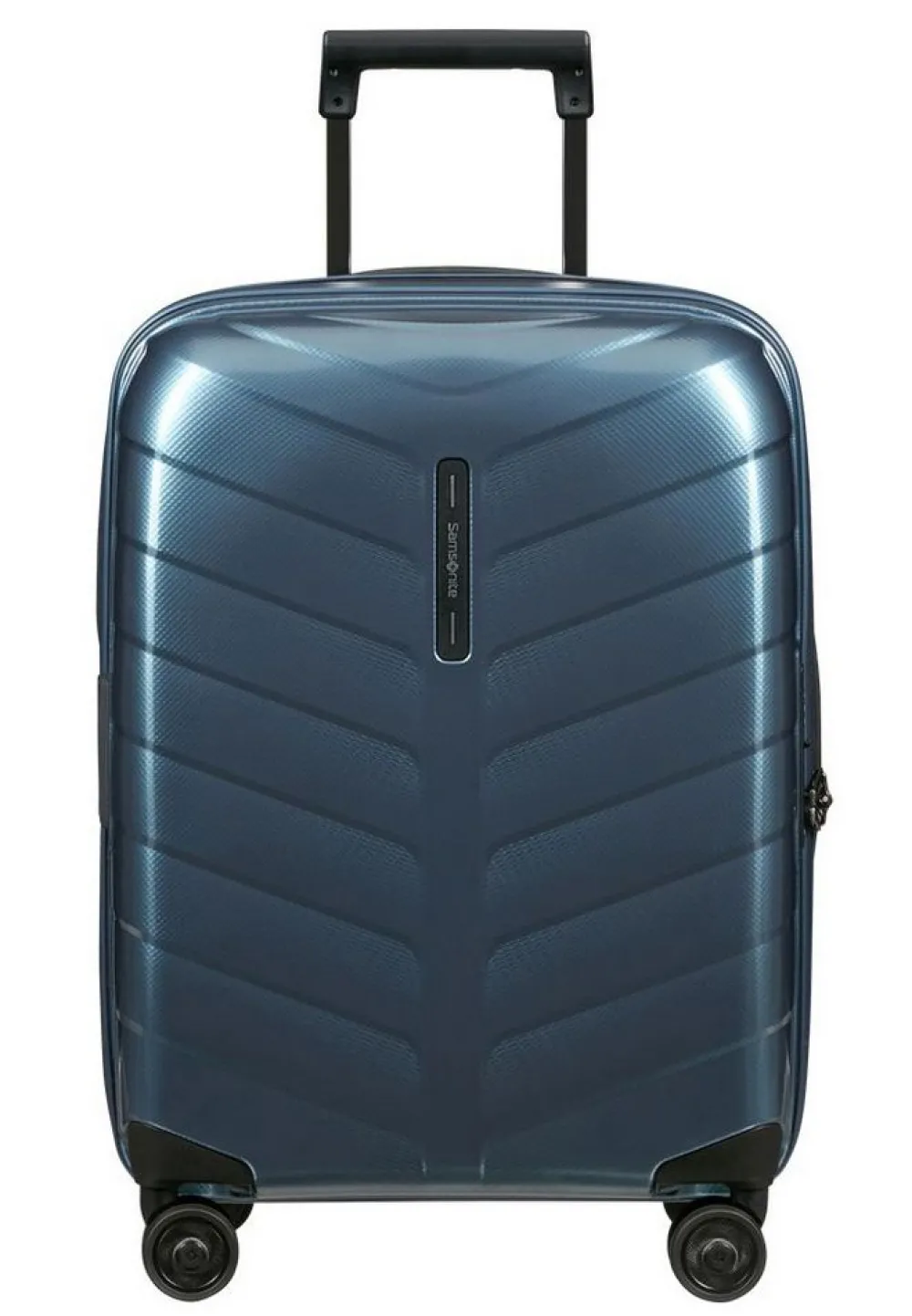 Trolley cabina Samsonite Attrix. Trolley cabina realizzato in robusto Roxkinâ„¢, quattro grandi e silenziose ruote piroettanti, sistema di sicurezza a tripla combinazione e TSA per gli Stati Uniti. Carrello di traino bitubo regolabile in altezza con push botton, maniglia di servizio superiore e laterale. Interno completamente foderato, con nastri per bloccare l’abbigliamento e doppio divisorio. Zip di espansione. Garanzia 10 anni.
