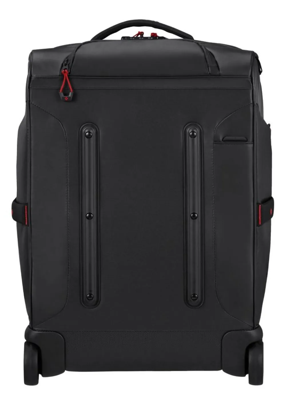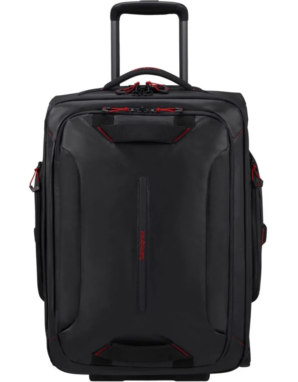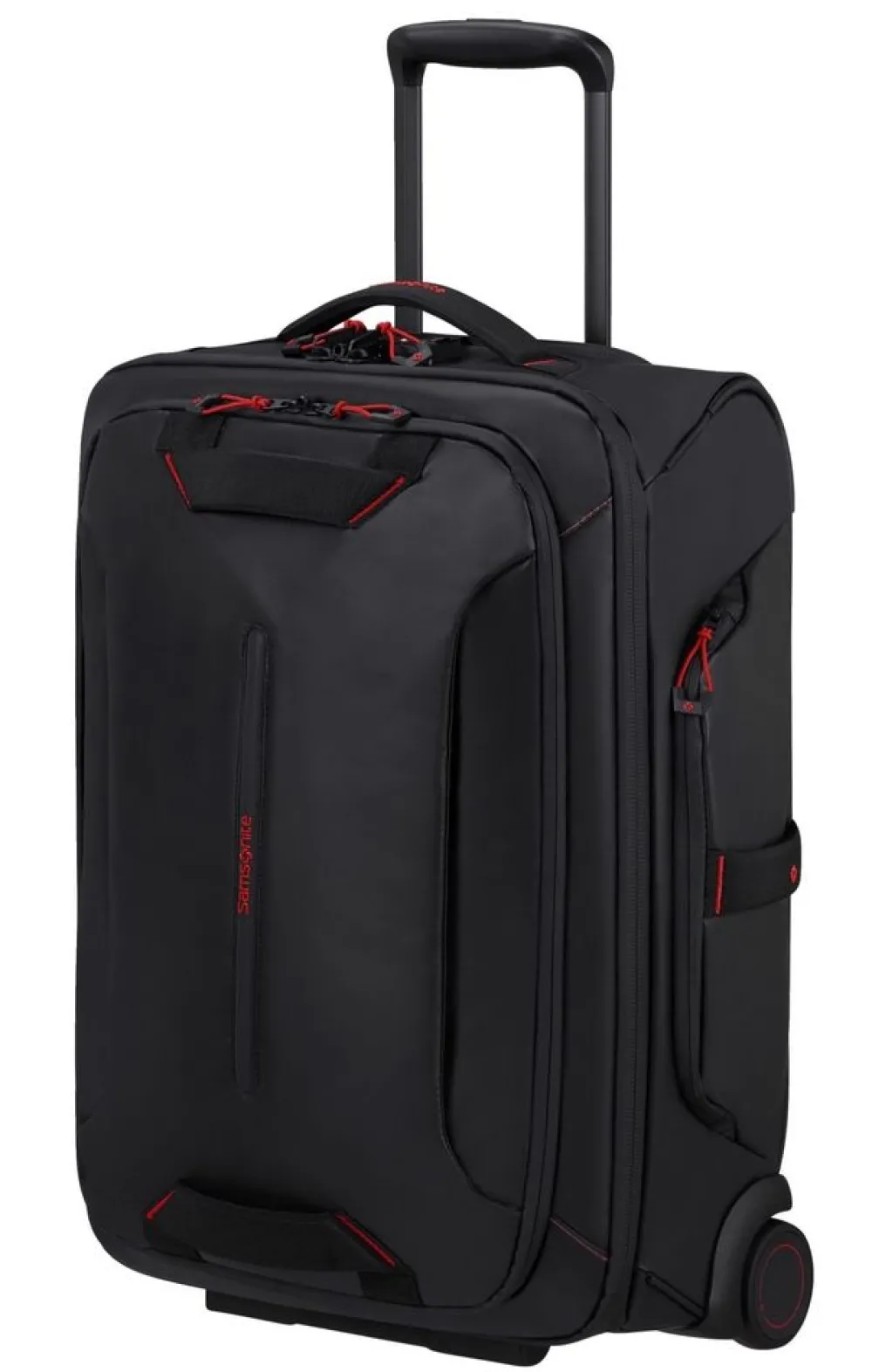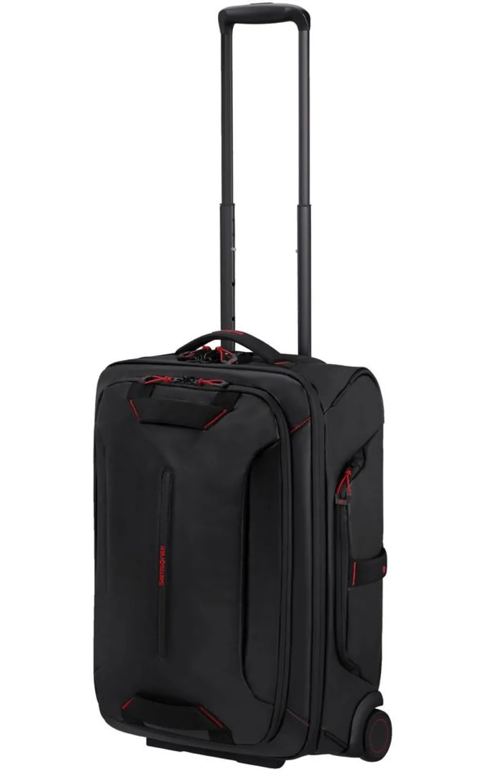 Trolley cabina Samsonite Ecodiver. Trolley cabina realizzato in robusto materiale gommato, 100% riciclato PET e resistente all’acqua. Due grandi e silenziose ruote integrate, sistema di sicurezza a tripla combinazione e TSA per gli Stati Uniti. Carrello di traino bitubo regolabile in altezza con push botton, maniglie di servizio superiore, laterale e frontali. Interno con nastri per bloccare l’abbigliamento e tasca per piccoli oggetti. Porta indirizzo integrato. Garanzia 5 anni.