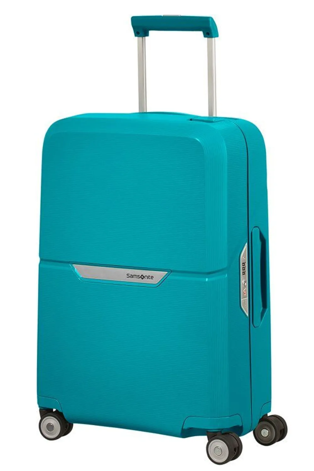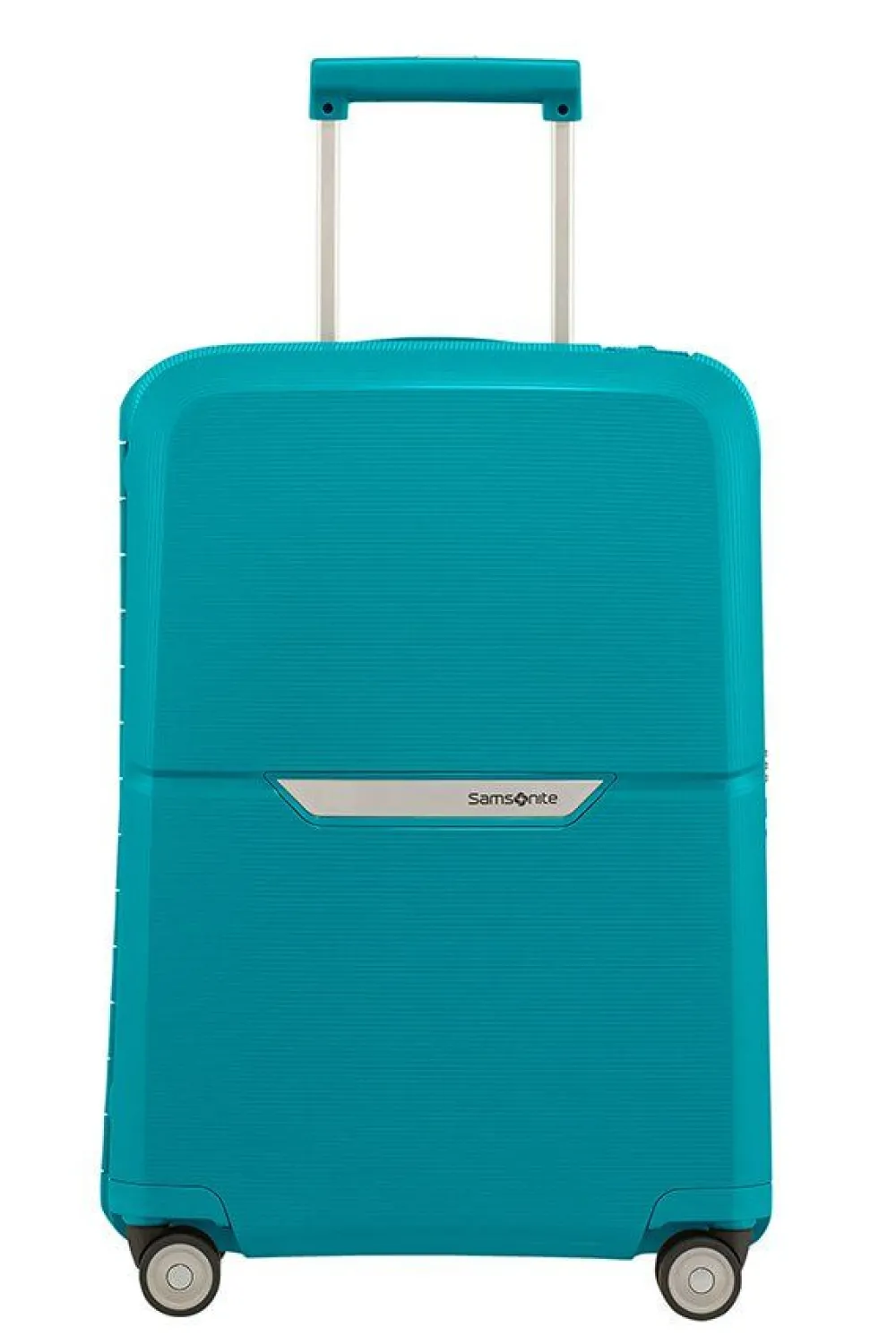 Trolley cabina Samsonite Magnum 55cm. Trolley cabina realizzato in robusto polipropilene, quattro grandi e silenziose ruote piroettanti, robusti ganci di chiusura con sistema di sicurezza a tripla combinazione e TSA per gli Stati Uniti, ganci laterali con blocco. Carrello di traino regolabile in altezza con push botton, maniglia di servizio laterale. Interno completamente foderato, con nastri per bloccare l’abbigliamento e divisorio. Garanzia 5 anni.