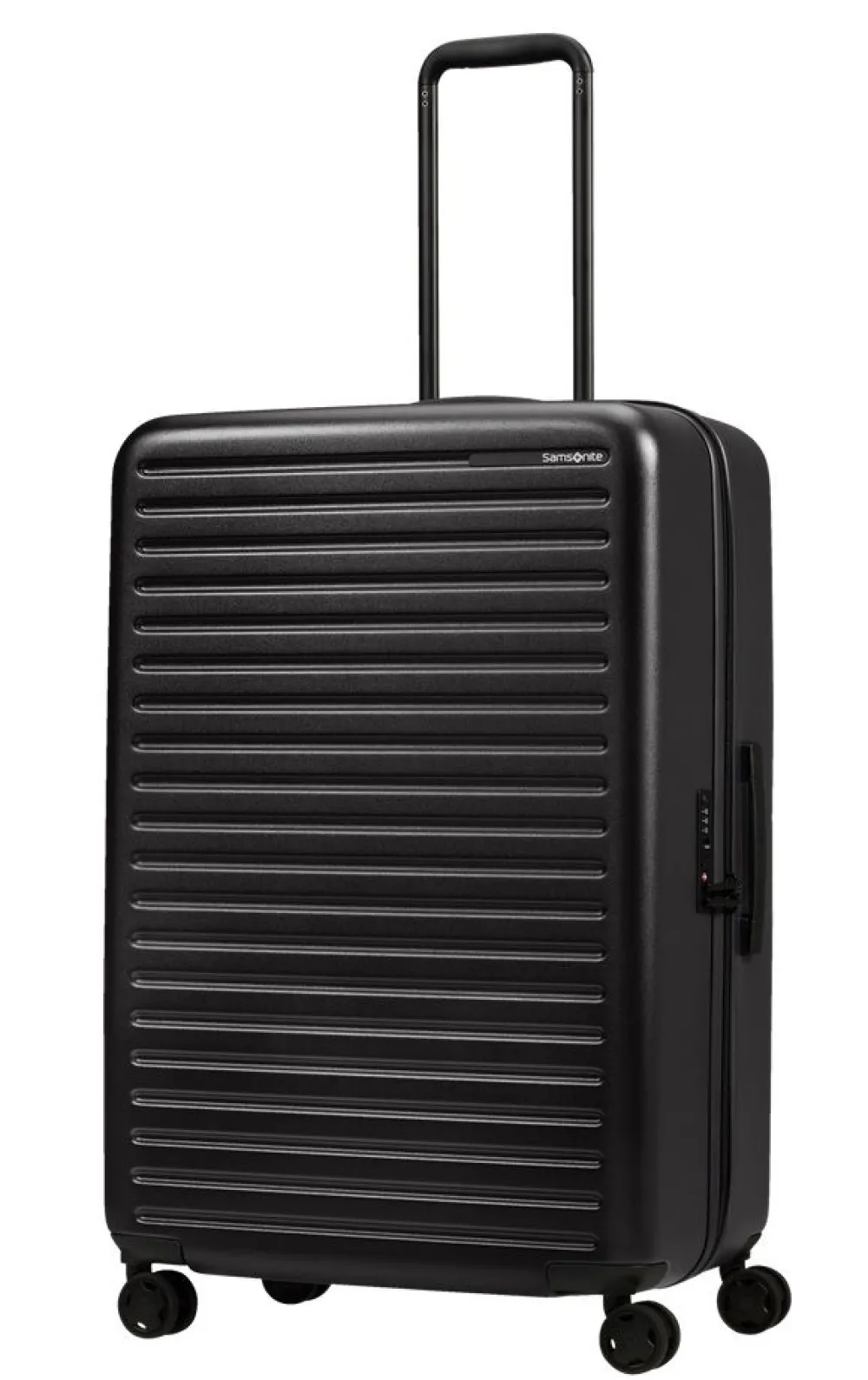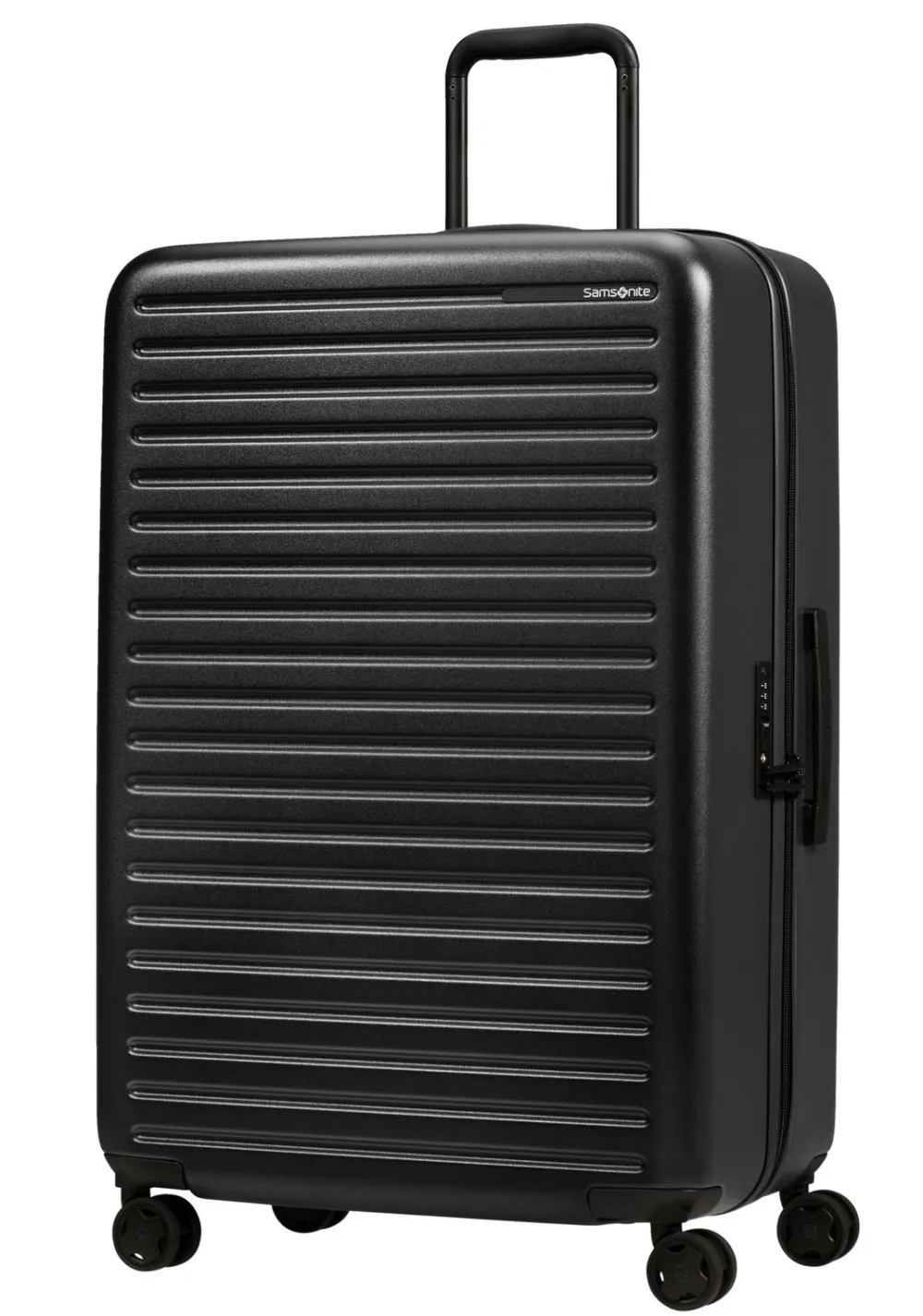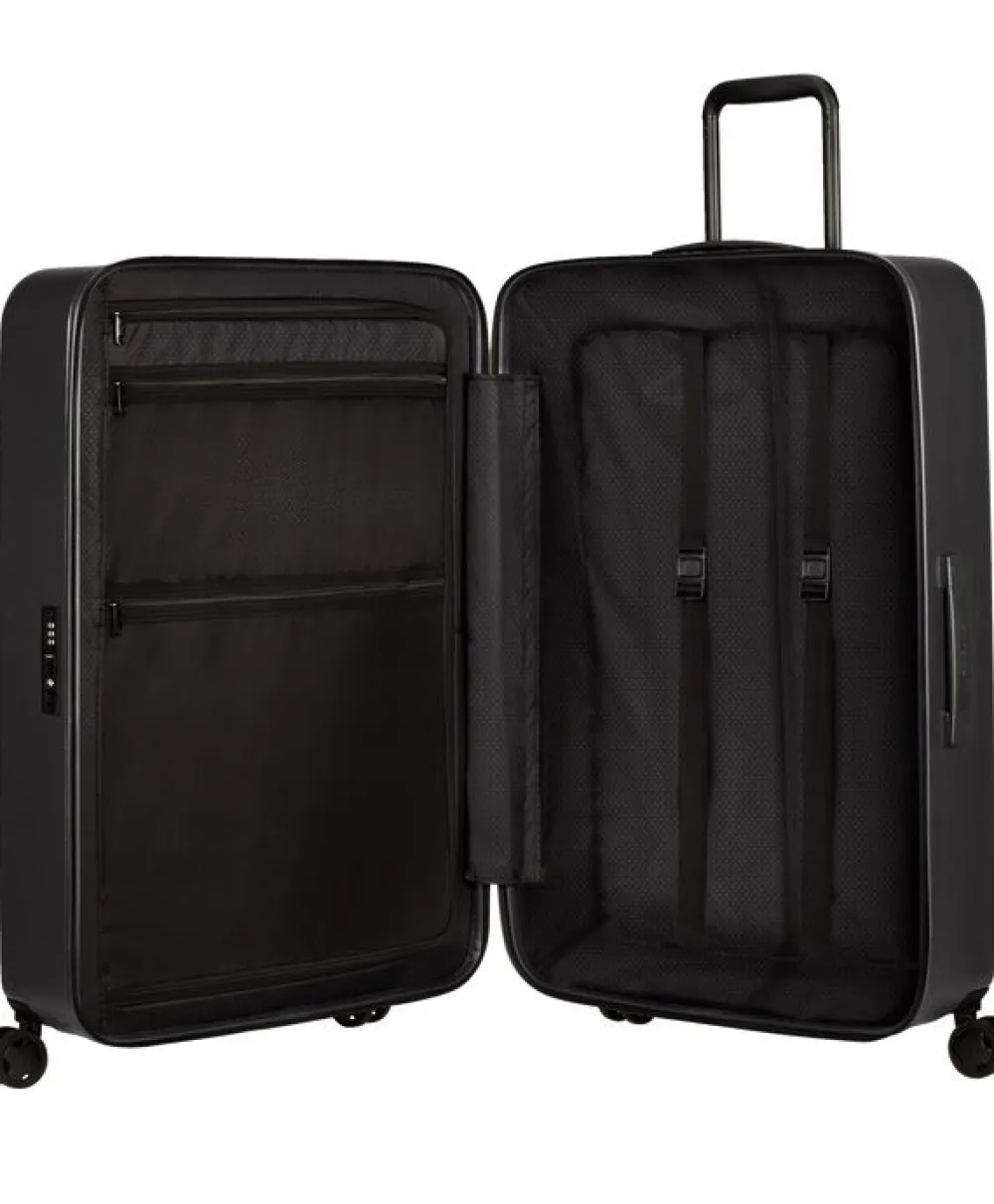 Trolley grande 75cm Samsonite Stackd. Trolley realizzato in robusto Policarbonato, 4 ruote piroettanti gemellari per la massima manovrabilità , carrello di traino telescopico con push botton, chiusura a tripla combinazione con sistema TSA per gli Stati Uniti. Interno completamente foderato con divisorio e nastri per bloccare l’abbigliamento. Garanzia 5 anni.