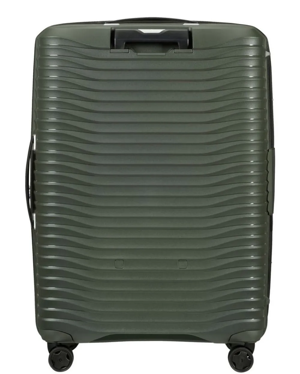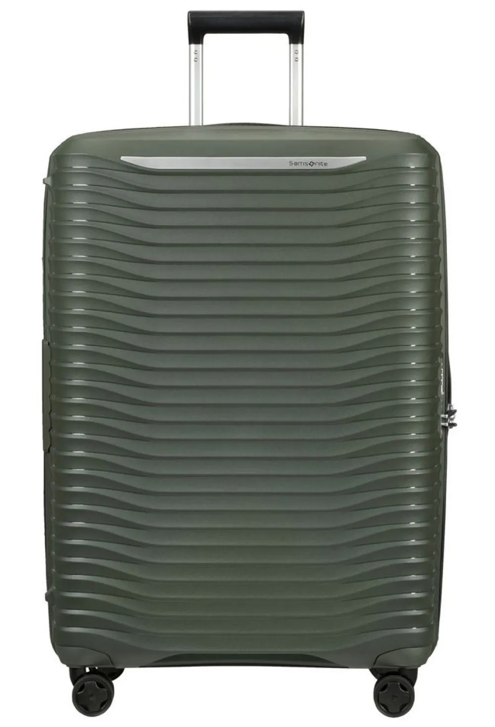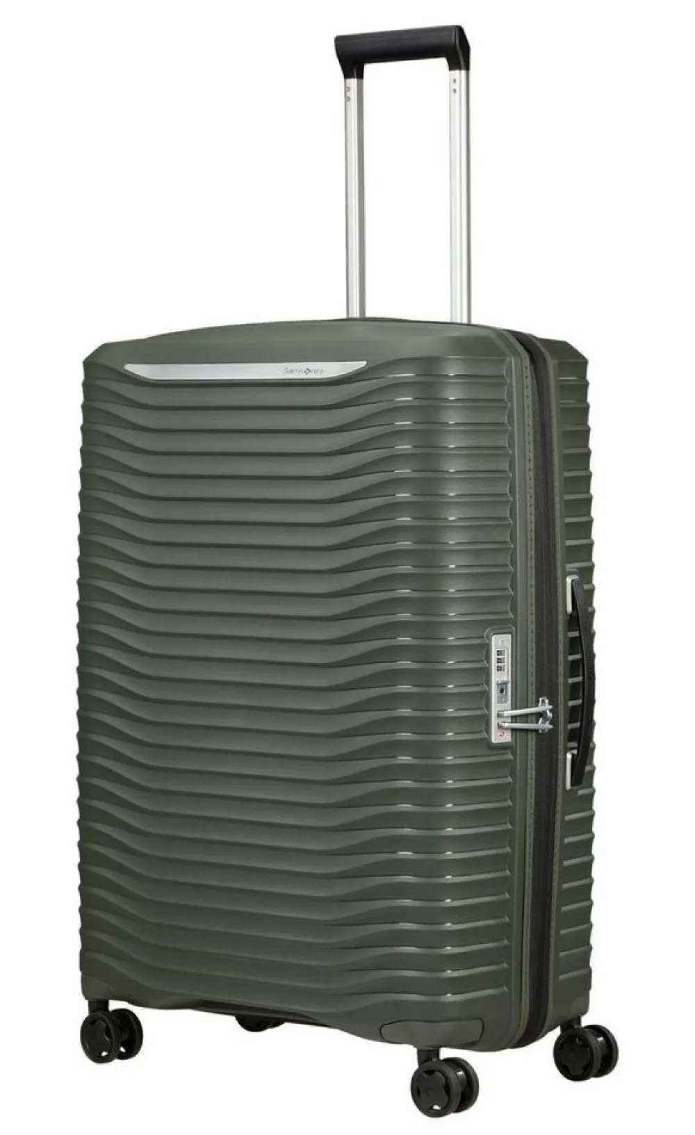 Trolley grande 75cm Samsonite Upscape. Trolley realizzato in robusto polipropilene, 4 ruote piroettanti gemellari per la massima manovrabilità , con sospensione per ridurre al massimo il rumore o lo shock da urti. Carrello di traino telescopico con push botton, chiusura a tripla combinazione con sistema TSA per gli Stati Uniti. Interno foderato con divisorio e nastri per bloccare l’abbigliamento, completamente sfoderabile e lavabile. Zip di espansione. Garanzia 5 anni.