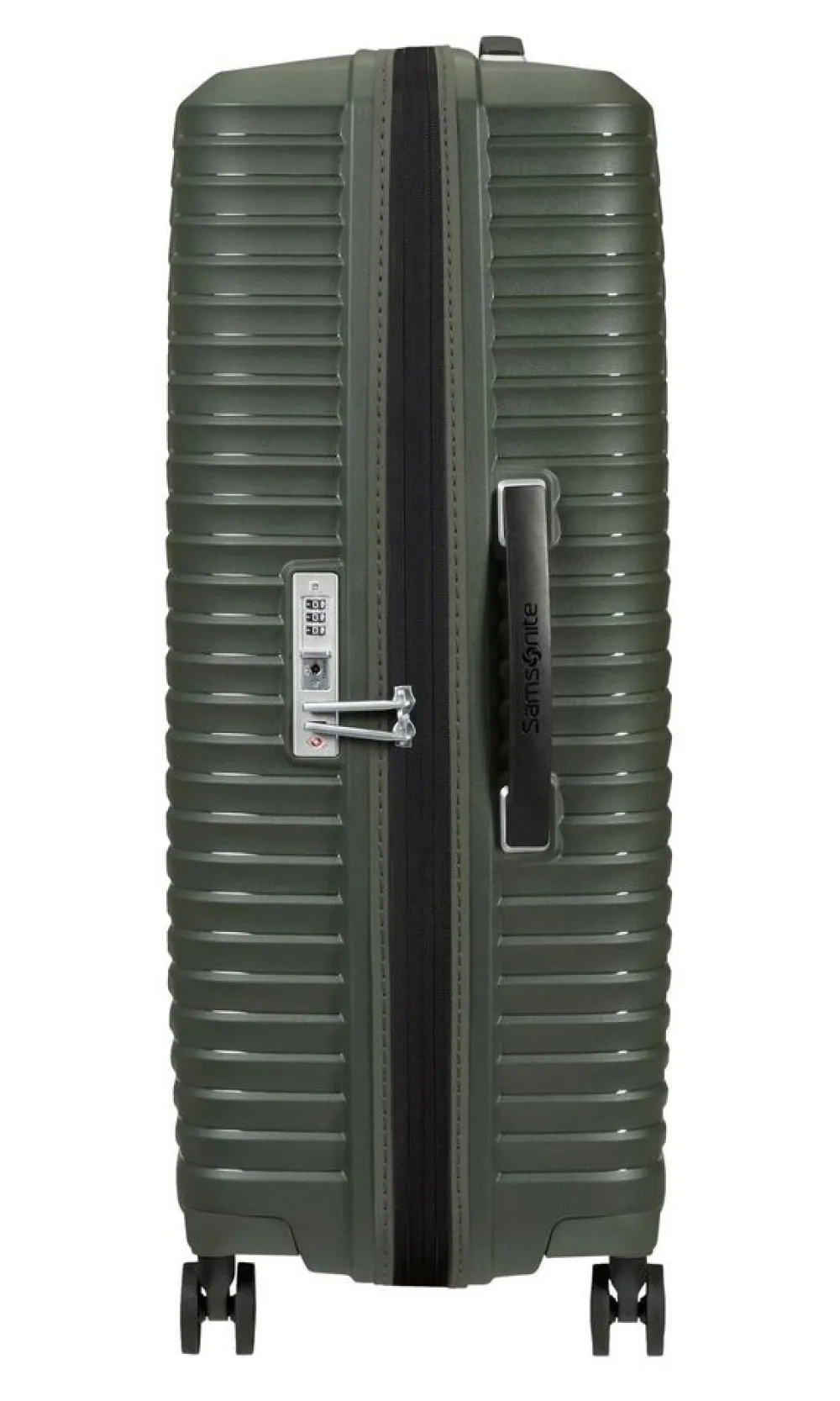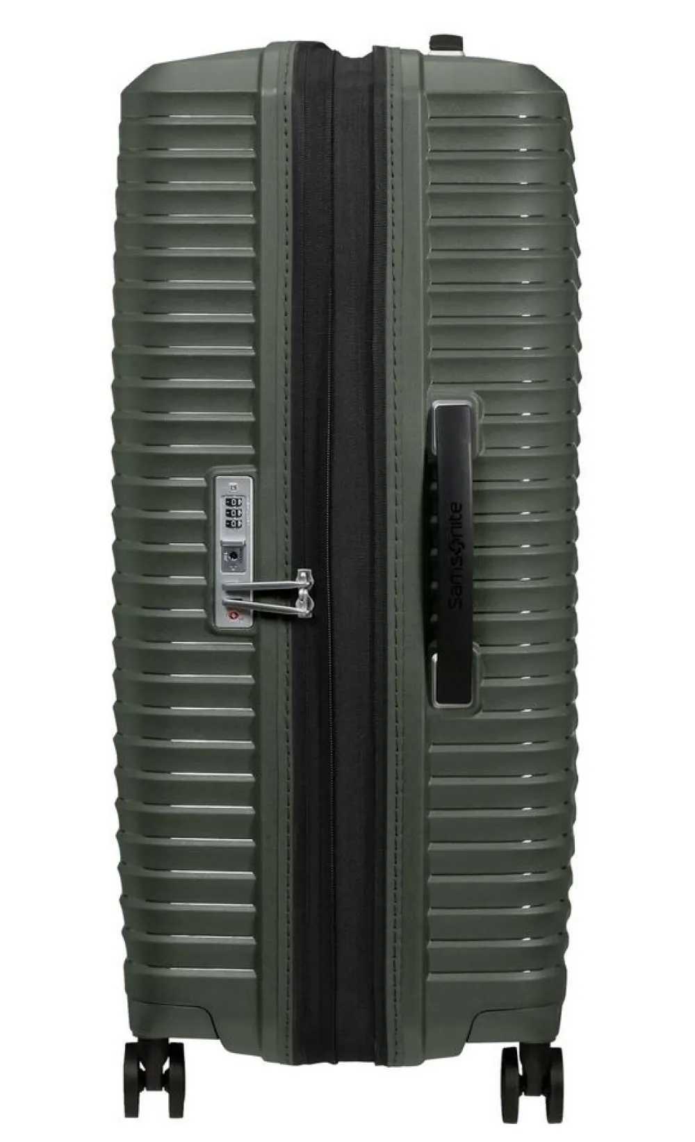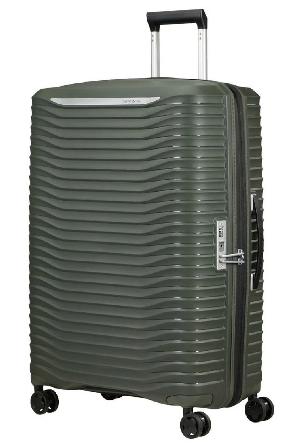 Trolley grande 75cm Samsonite Upscape. Trolley realizzato in robusto polipropilene, 4 ruote piroettanti gemellari per la massima manovrabilità , con sospensione per ridurre al massimo il rumore o lo shock da urti. Carrello di traino telescopico con push botton, chiusura a tripla combinazione con sistema TSA per gli Stati Uniti. Interno foderato con divisorio e nastri per bloccare l’abbigliamento, completamente sfoderabile e lavabile. Zip di espansione. Garanzia 5 anni.