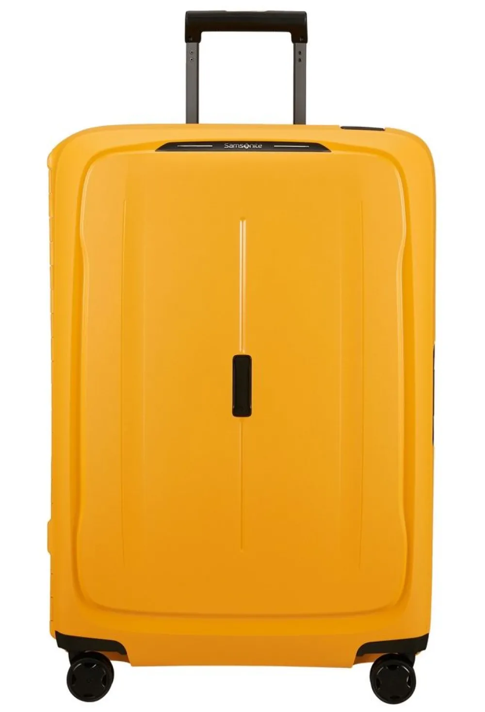 Trolley grande Samsonite Essens. Trolley realizzato in robusto polipropilene riciclato, quattro grandi e silenziose ruote piroettanti, robusti ganci di chiusura con sistema di sicurezza a tripla combinazione e TSA per gli Stati Uniti. Carrello di traino regolabile in altezza con push botton, maniglia di servizio laterale. Interno foderato, con fodere estraibili e trasportabili con due pratiche maniglie. Logo frontale personalizzato (vengono forniti quattro diversi loghi adesivi, per rendere il bagaglio subito riconoscibile). Garanzia 5 anni.