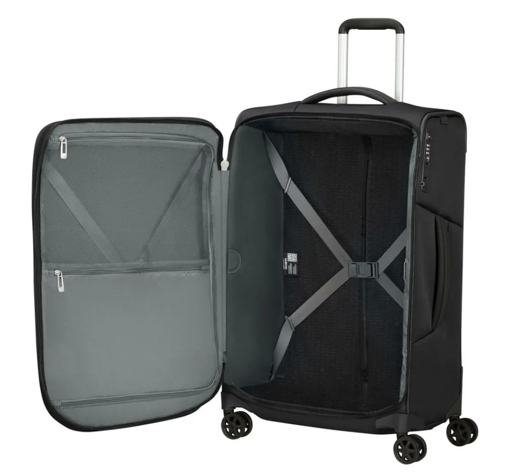 Trolley medio 67cm Samsonite Respark. Trolley realizzato in robusto poliestere e Recyclex, 4 ruote piroettanti gemellari per la massima manovrabilità . Carrello di traino telescopico con push botton, chiusura a tripla combinazione con sistema TSA per gli Stati Uniti. Interno foderato con divisorio e nastri per bloccare l’abbigliamento. Zip di espansione. Garanzia 5 anni.