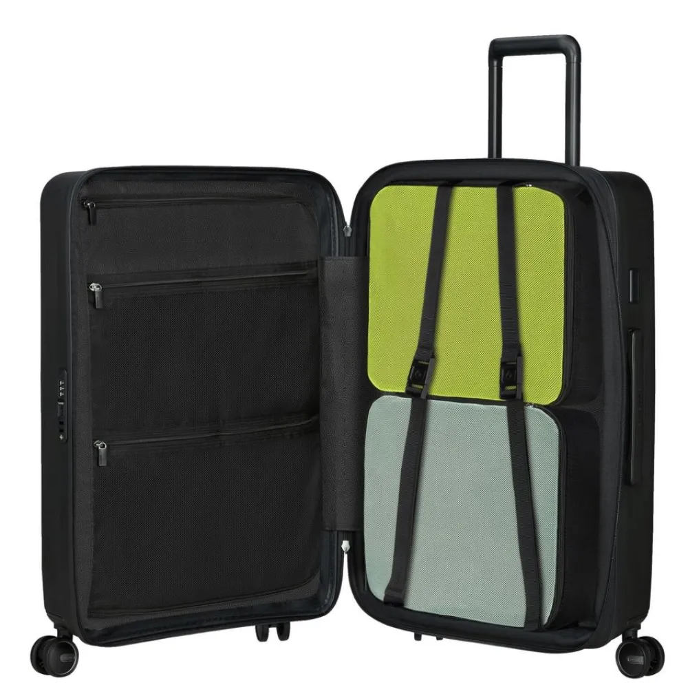 Trolley medio 68cm Samsonite Restackd. Trolley realizzato in robusto polipropilene, 4 ruote piroettanti gemellari per la massima manovrabilità . Carrello di traino telescopico con push botton, chiusura a tripla combinazione con sistema TSA per gli Stati Uniti. Interno foderato con divisorio e nastri per bloccare l’abbigliamento. Zip di espansione. Comodi packing cubes inclusi. Garanzia 5 anni.