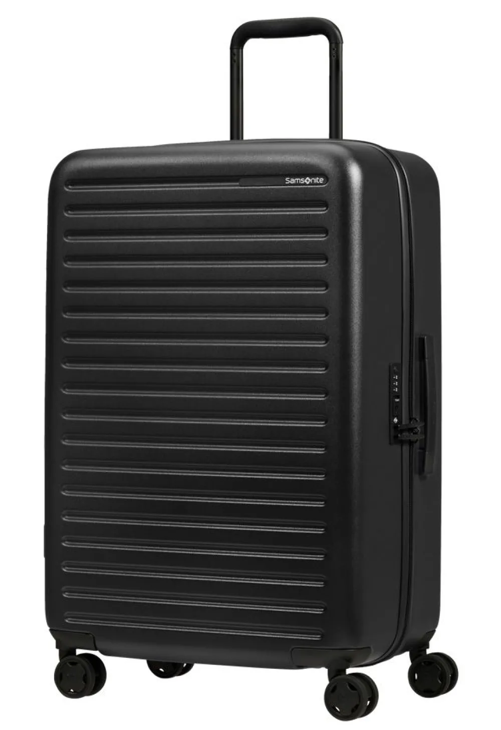 Trolley medio 68cm Samsonite Stackd. Trolley realizzato in robusto Policarbonato, 4 ruote piroettanti gemellari per la massima manovrabilità , carrello di traino telescopico con push botton, chiusura a tripla combinazione con sistema TSA per gli Stati Uniti. Interno completamente foderato con divisorio e nastri per bloccare l’abbigliamento. Garanzia 5 anni.