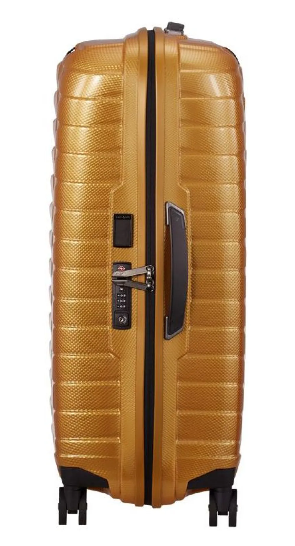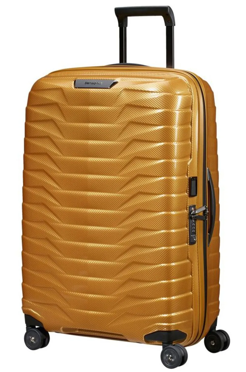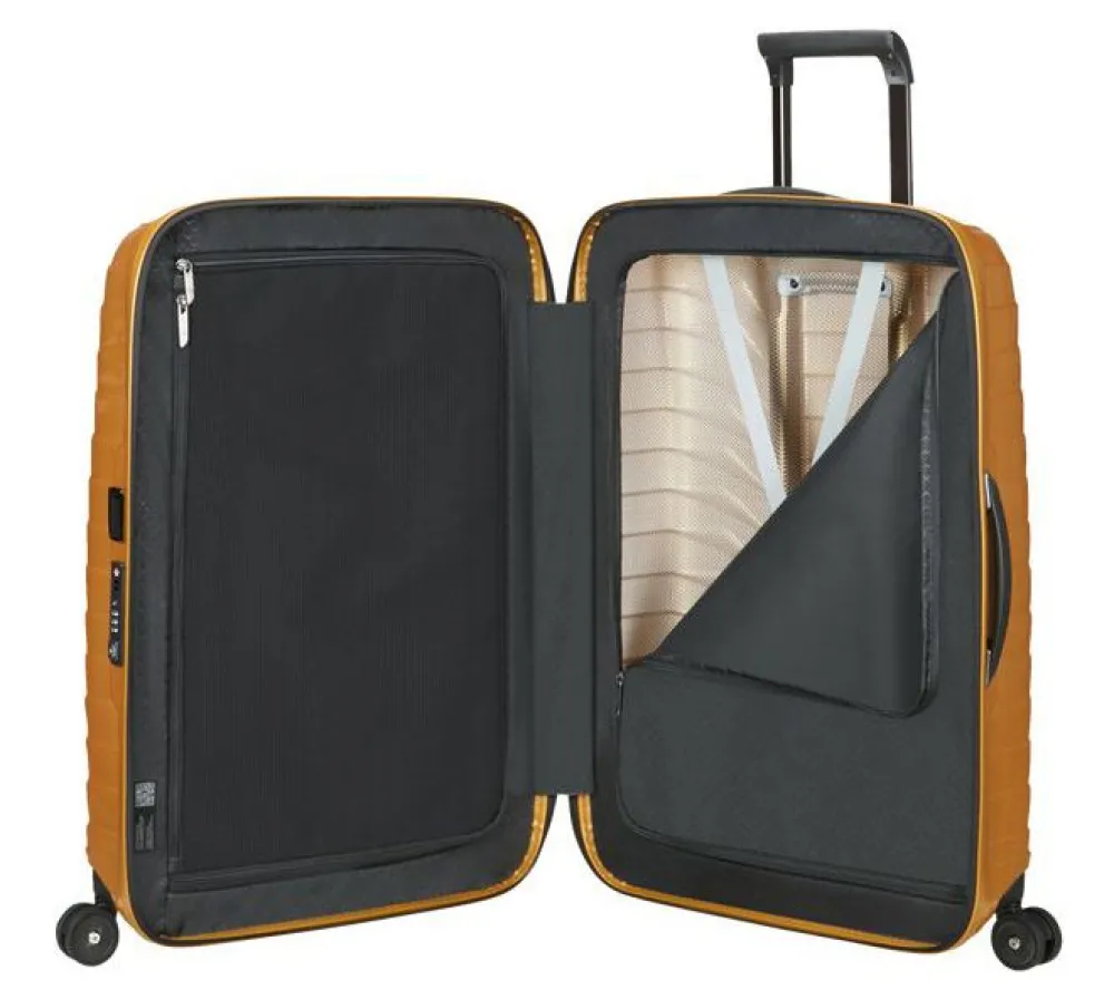Trolley medio 69cm Samsonite Proxis. Trolley realizzato in robusto Roxkinâ„¢, 4 ruote piroettanti gemellari per la massima manovrabilità . Carrello di traino telescopico bitubo con push botton, chiusura a tripla combinazione con sistema TSA per gli Stati Uniti. Interno foderato con divisorio e nastri per bloccare l’abbigliamento. Tag ID integrato e retrattile. Garanzia 10 anni.