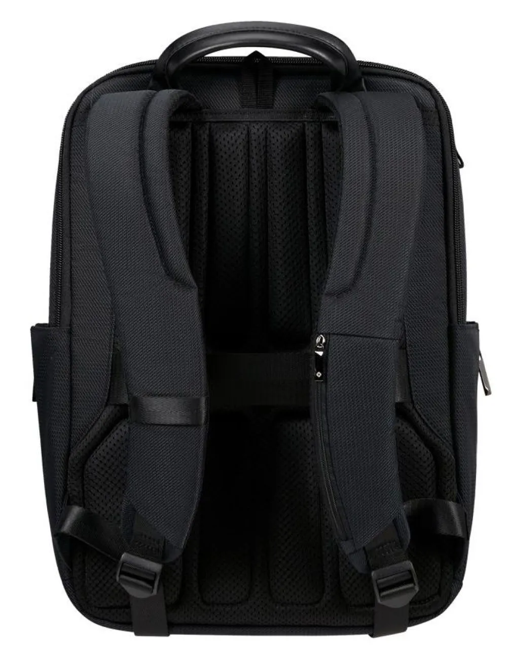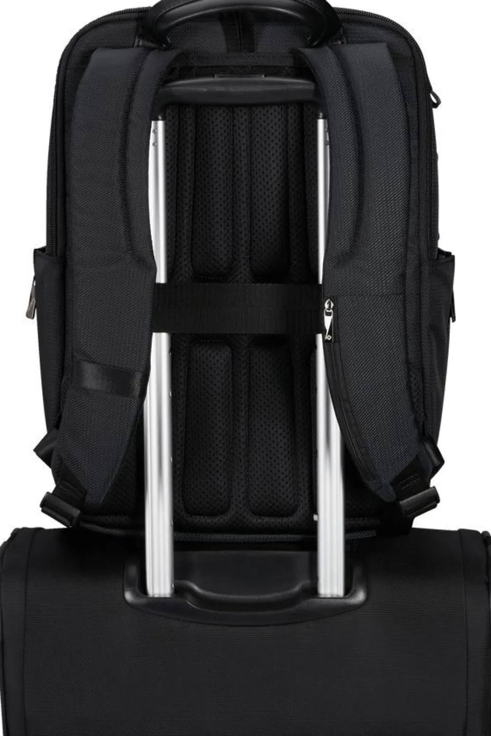 Zaino M 15,6″ Samsonite Ecodiver. Zaino realizzato in robusto ,ateriale gommato 100% riciclato e resistente all’acqua, confortevole maniglia superiore, spallacci gommati e schienale traspirante, ampia tasca principale con comparto laptop 15,6″ e tablet. Tasca frontale chiuse da zip, con organizzazione interna. Cintura sternale regolabile in altezza. Passante asta trolley.