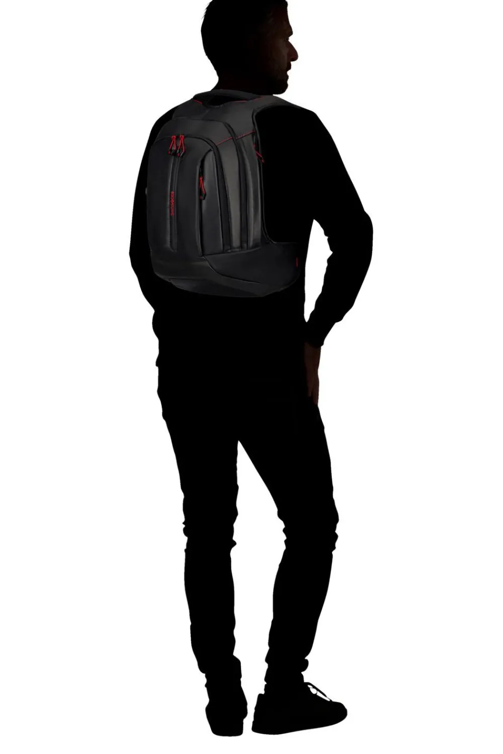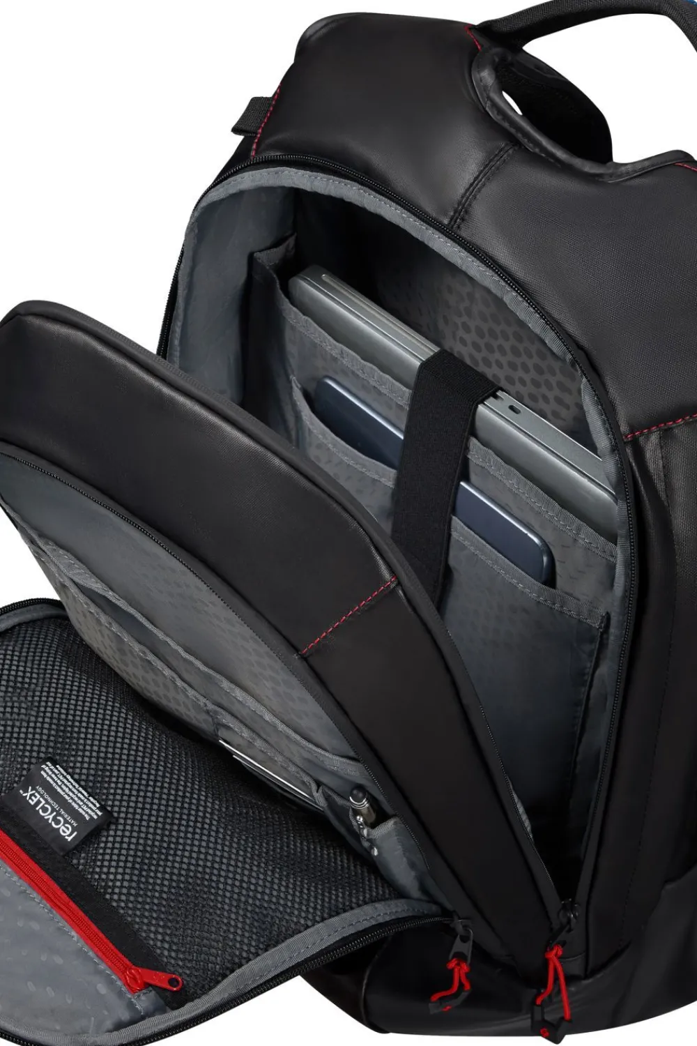 Zaino M 15,6″ Samsonite Ecodiver. Zaino realizzato in robusto ,ateriale gommato 100% riciclato e resistente all’acqua, confortevole maniglia superiore, spallacci gommati e schienale traspirante, ampia tasca principale con comparto laptop 15,6″ e tablet. Tasca frontale chiuse da zip, con organizzazione interna. Cintura sternale regolabile in altezza. Passante asta trolley.