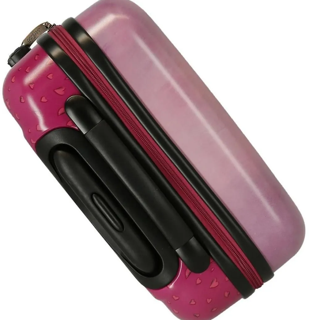 Trolley cabina Santoro Gorjuss For My Love. Trolley cabina realizzato in robusto ABS, quattro grandi e silenziose ruote piroettanti, zip di chiusura con sistema di sicurezza a tripla combinazione TSA per gli Stati Uniti. Carrello di traino regolabile in altezza con push botton. Interno completamente foderato, con doppio divisorio. Garanzia 2 anni.
