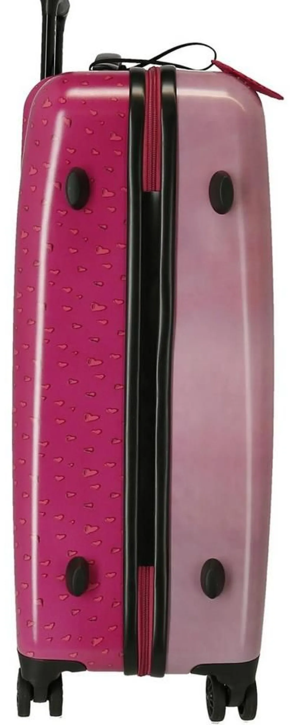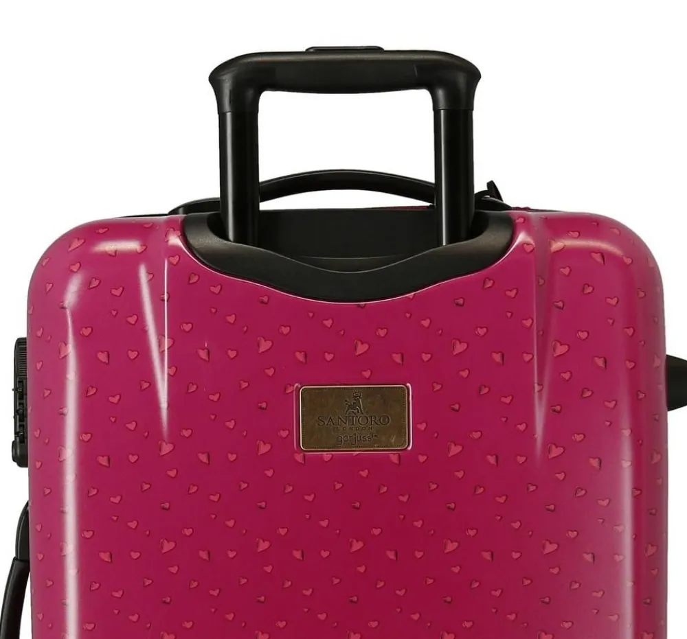 Trolley medio Santoro Gorjuss For My Love. Trolley realizzato in robusto ABS, quattro grandi e silenziose ruote piroettanti, zip di chiusura con sistema di sicurezza a tripla combinazione TSA per gli Stati Uniti. Carrello di traino regolabile in altezza con push botton. Interno completamente foderato, con doppio divisorio. Garanzia 2 anni.