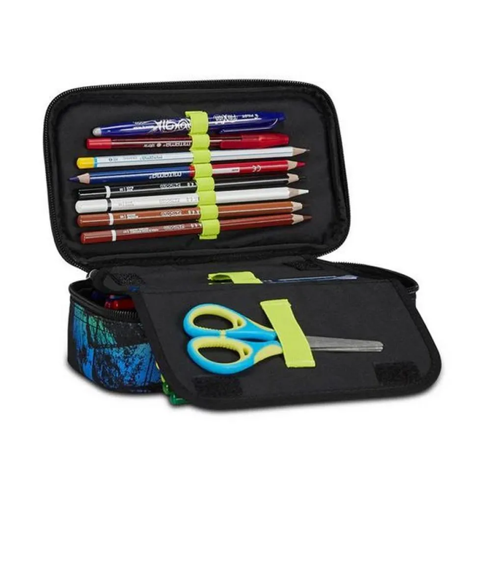 Astuccio per la scuola Seven Quick Case. Realizzato in robusto poliestere, con ampia tasca pirnicipale chiusa da zip e divisorio interno. Complete di tutto l’occorrente per la scuola!
