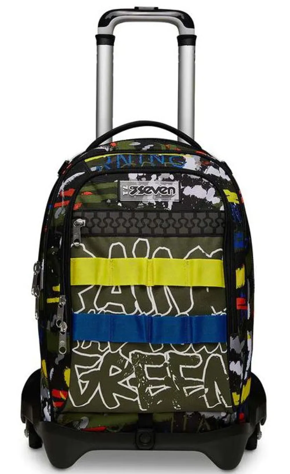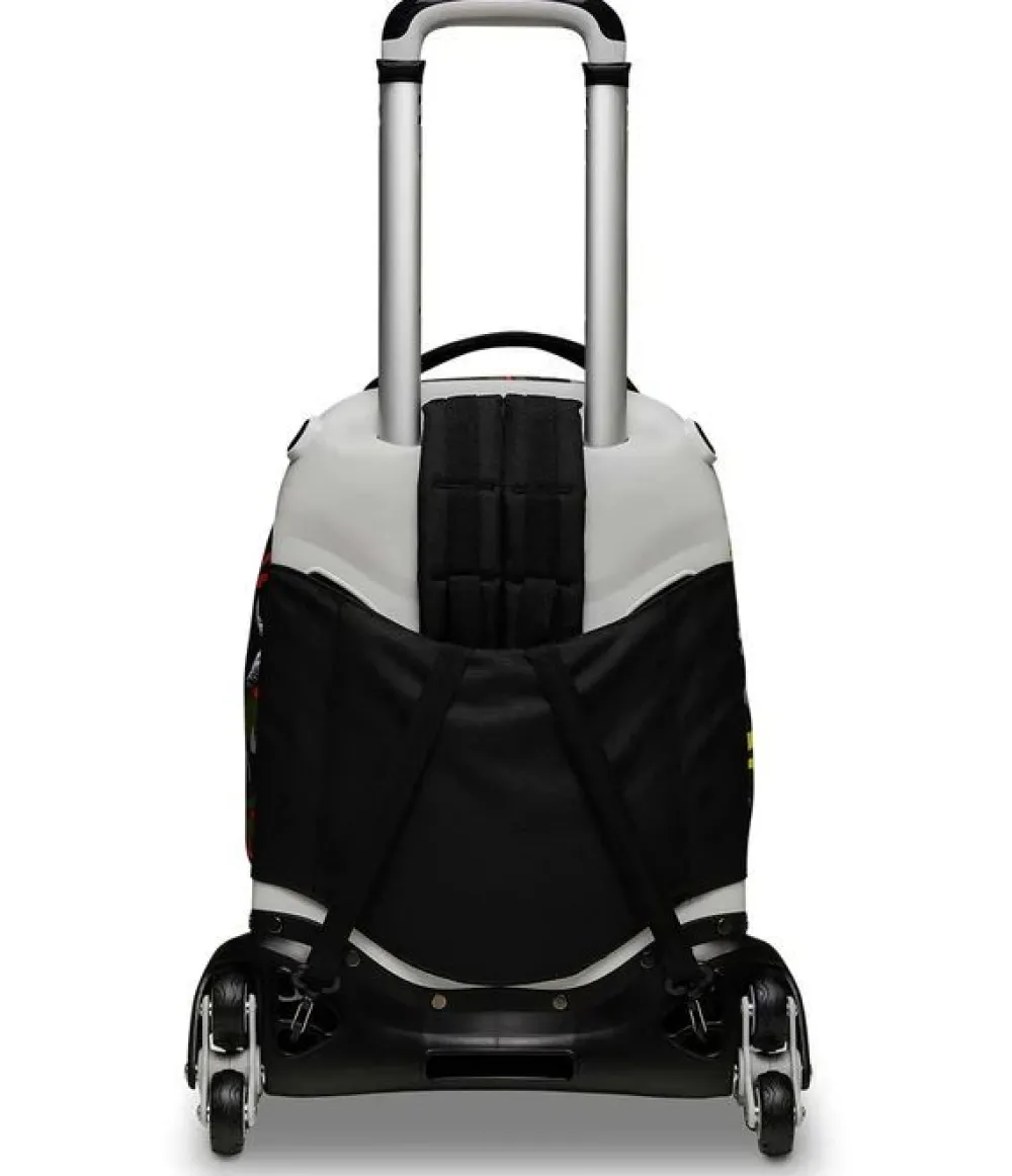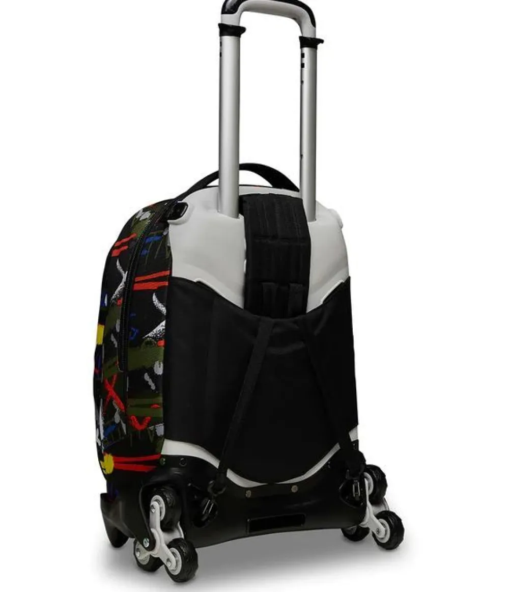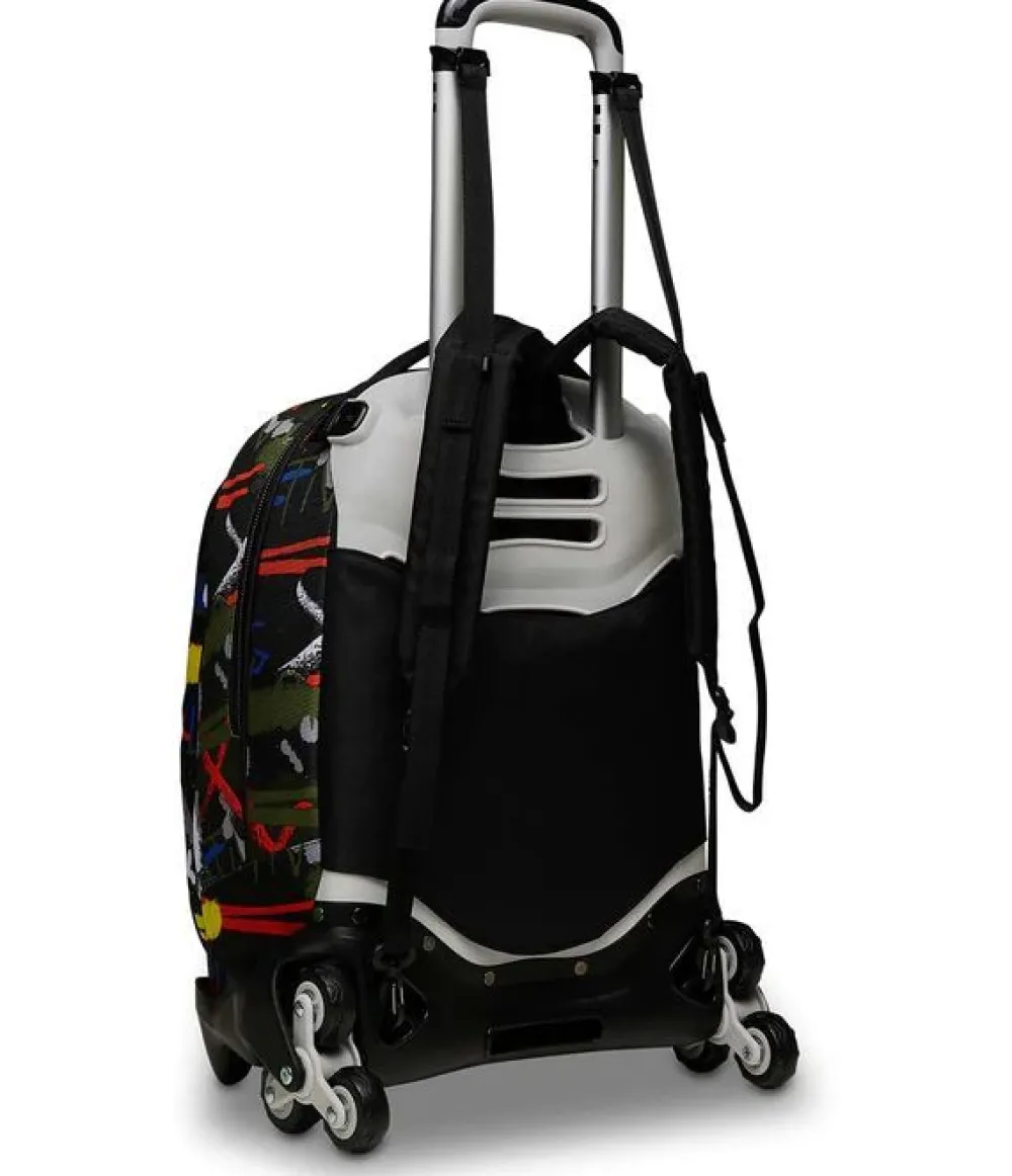 Trolley scuola Invicta New Plug. Zaino realizzato in robusto poliestere riciclato, schienale imbottito e rivestito in tessuto, spallacci imbottiti e traspiranti. Lo zaino New Plug di Invicta può essere comodamente sganciato dal carrello di traino, per la pulizia o per la portabilità a zaino. Il carrello di traino è rinforzato con push botton, il fondo rigido e le grandi ruote gommate e silenziose. Ampia tasca principale e tasca frontale chiuse da zip. Il nuovo sistena Crossover System consente di trascinare il trolley senza sporcare gli spallacci: quando solleverai la barra telescopica di traino gli spallacci si alzeranno in maniera automatica!