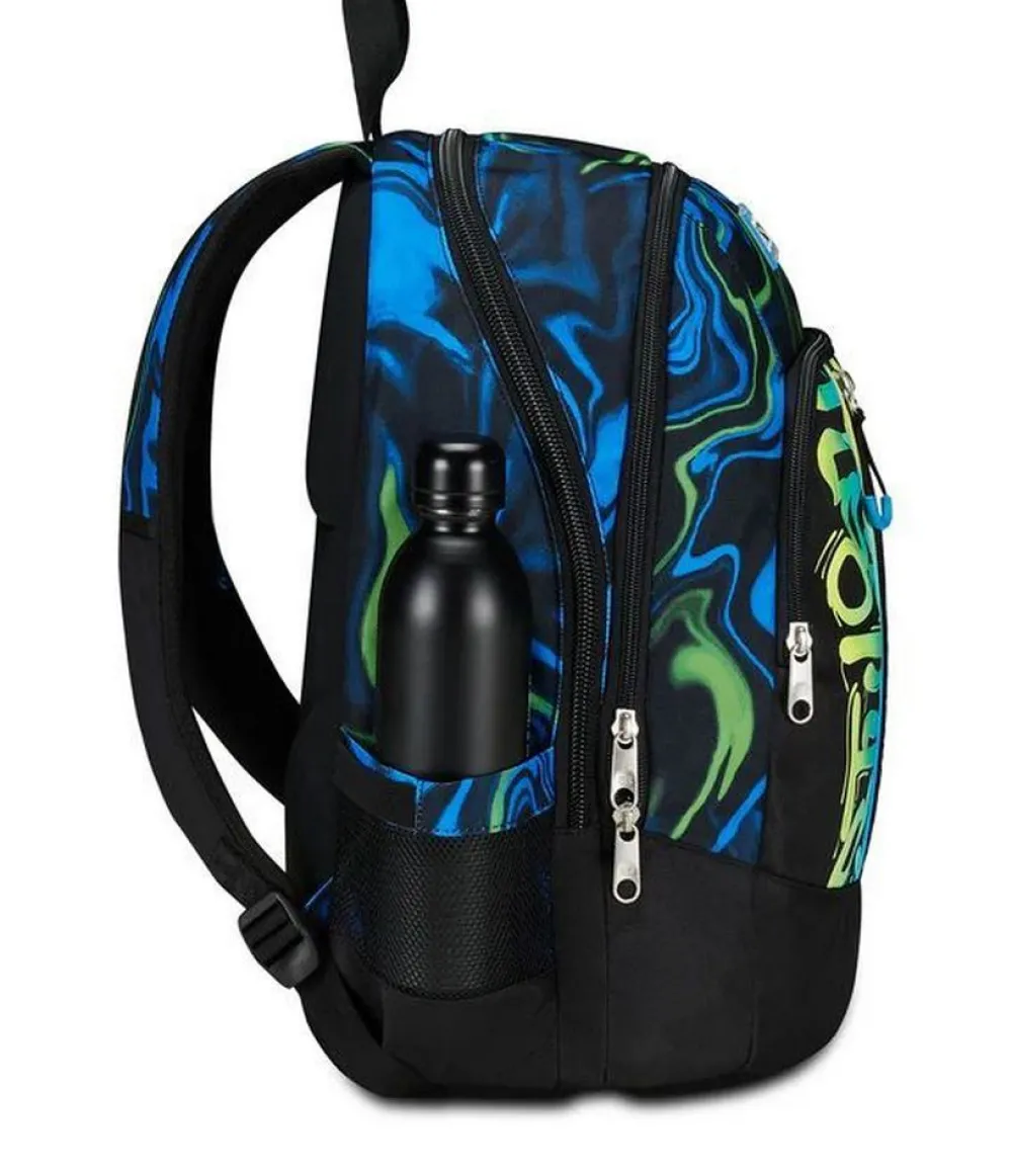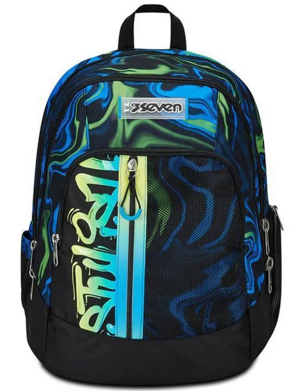 Zaino scuola Seven Advanced. Zaino realizzato in robusto poliestere, schienale in preformato e fondo integrato. Spallacci imbottiti e traspiranti, maniglia di servizio superiore. Tasca interna porta tablet/pc e tasca frontale organizzata per smartphone e piccoli oggetti. Tasche laterali chiuse da zip. Garanzia 4 anni.