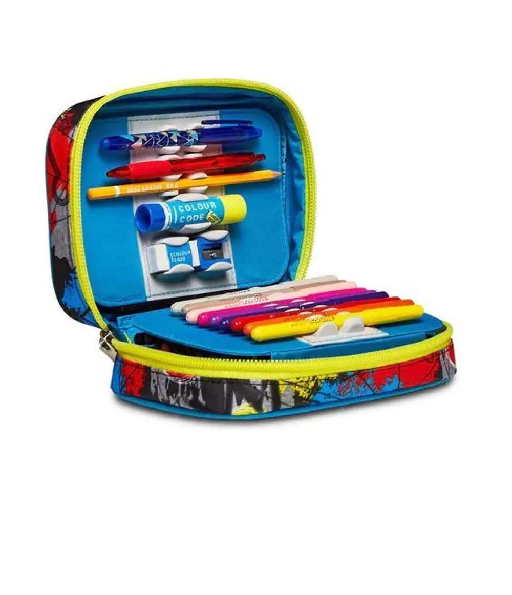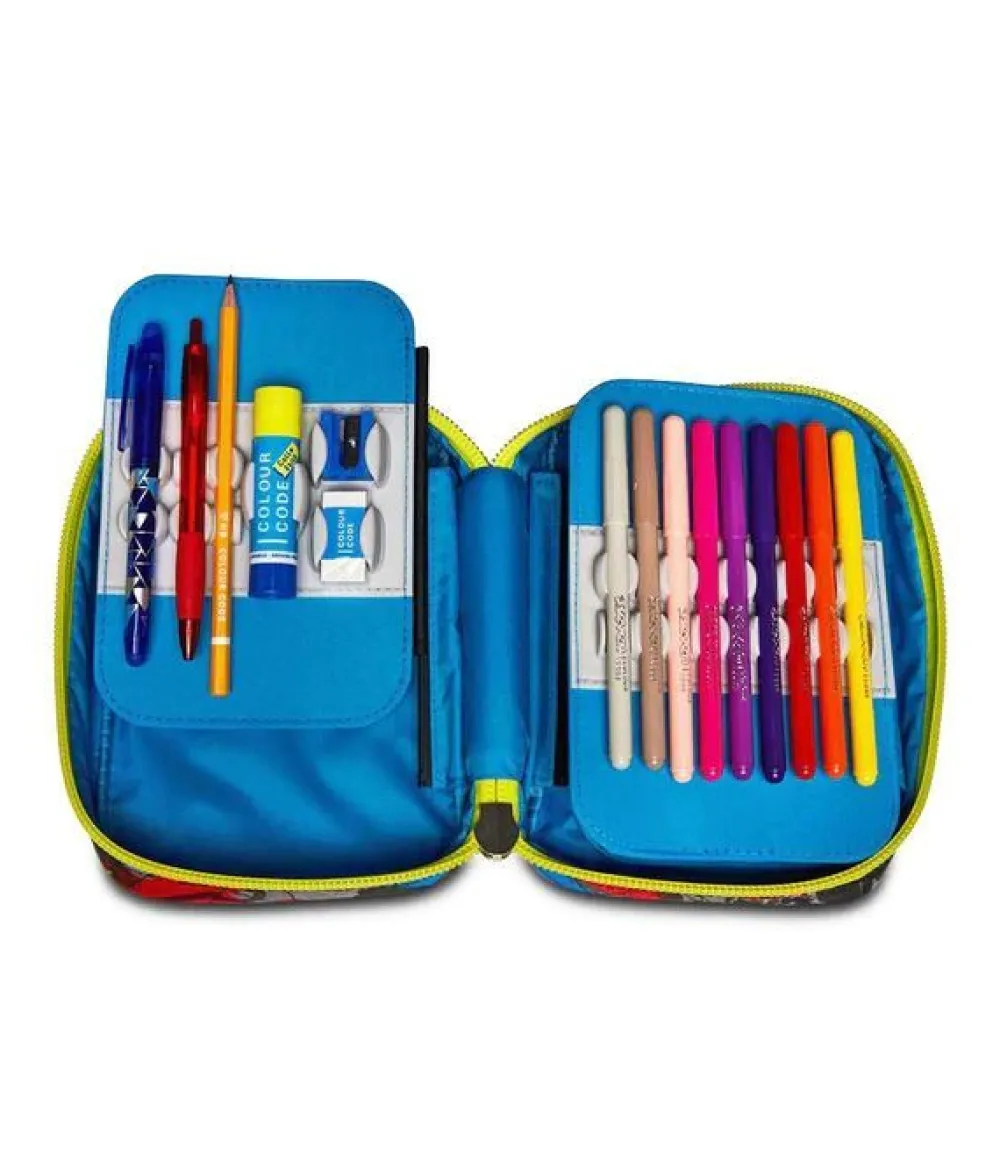 Astuccio per la scuola Seven Round Plus The Double. Realizzato in robusto poliestere, con chiusura zip e doppio vano interno. L’organizzazione interna consente di avere tutto in ordine: uno scomparto con elastici di diverse misure e una tasca chiusa da zip epr i piccoli oggetti. La misura ideale per avere con sè tutto il necessario nelel giornata scolastiche!