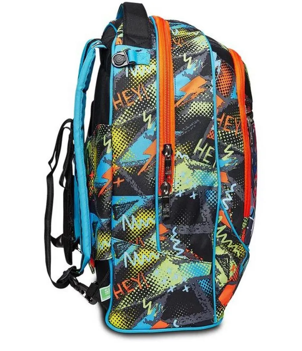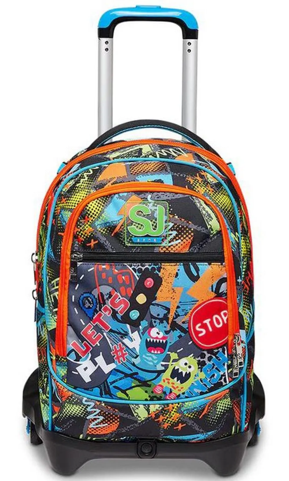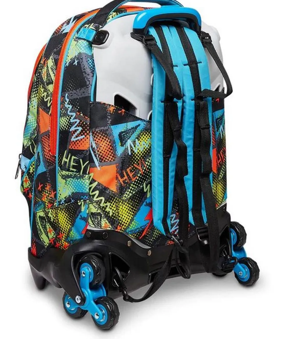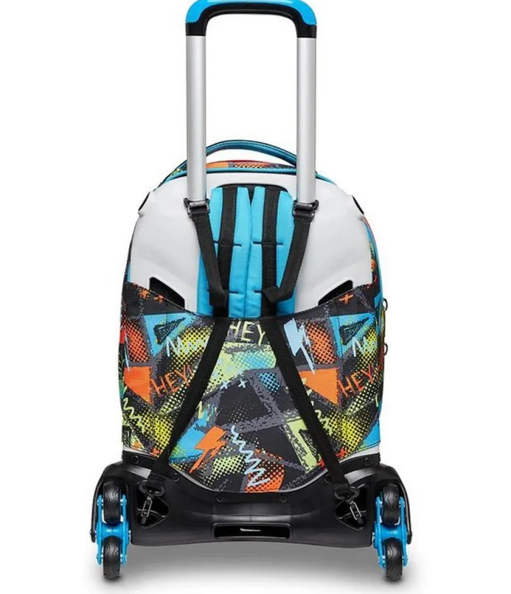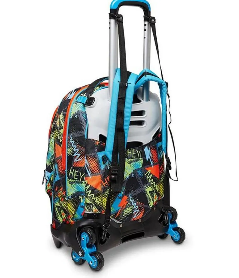 Trolley scuola Seven Jack 3 ruote. Zaino realizzato in robusto poliestere, schienale imbottito e rivestito in tessuto, spallacci imbottiti e traspiranti. Lo zaino Jack di Seven può essere comodamente sganciato dal carrello di traino in poche semplici mosse, per la pulizia o per la portabilità a zaino. Il carrello di traino è rinforzato con push botton, il fondo rigido. Ampia tasca principale e tasca frontale chiuse da zip. Il Crossover System consente di trascinare il trolley senza sporcare gli spallacci: quando solleverai la barra telescopica di traino gli spallacci si alzeranno in maniera automatica! L’innovativo sistema a 3 ruote consente di superare anche i gradini, senza sollevare lo zaino!