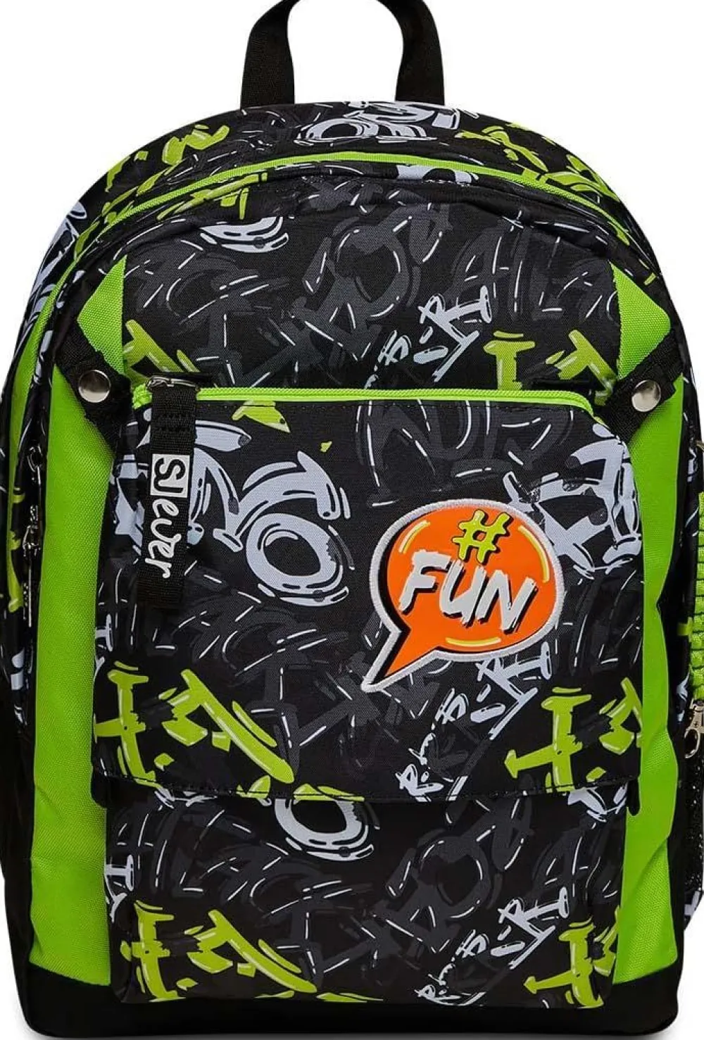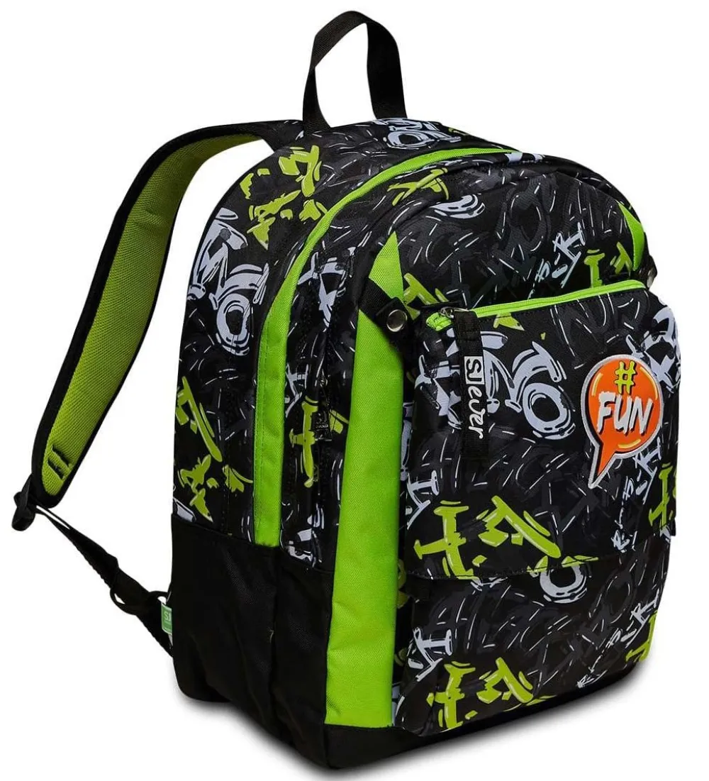 Zaino scuola SJ Ever. Zaino realizzato in robusto poliestere, schienale in Ergosystem preformato, spallacci imbottiti, maniglia di servizio superiore. Tasca frontale. Tasca laterale porta borraccia.