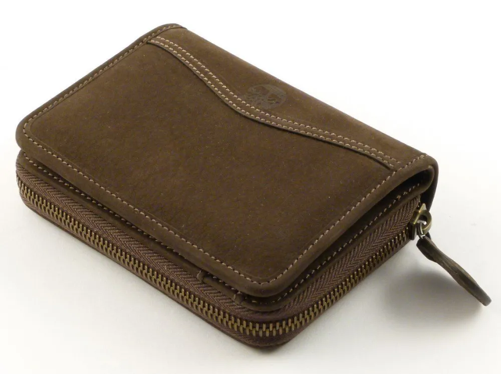 Portafoglio donna in pelle Timberland M3701 Made in Italy. Portafoglio realizzato in vera pelle scamosciata italiana, vano principale chiuso da bottone, con portadocumenti e tasca banconote. Soffietto portamonete posteriore chiuso da zip. Internamente marchiato Timberland – Made in Italy