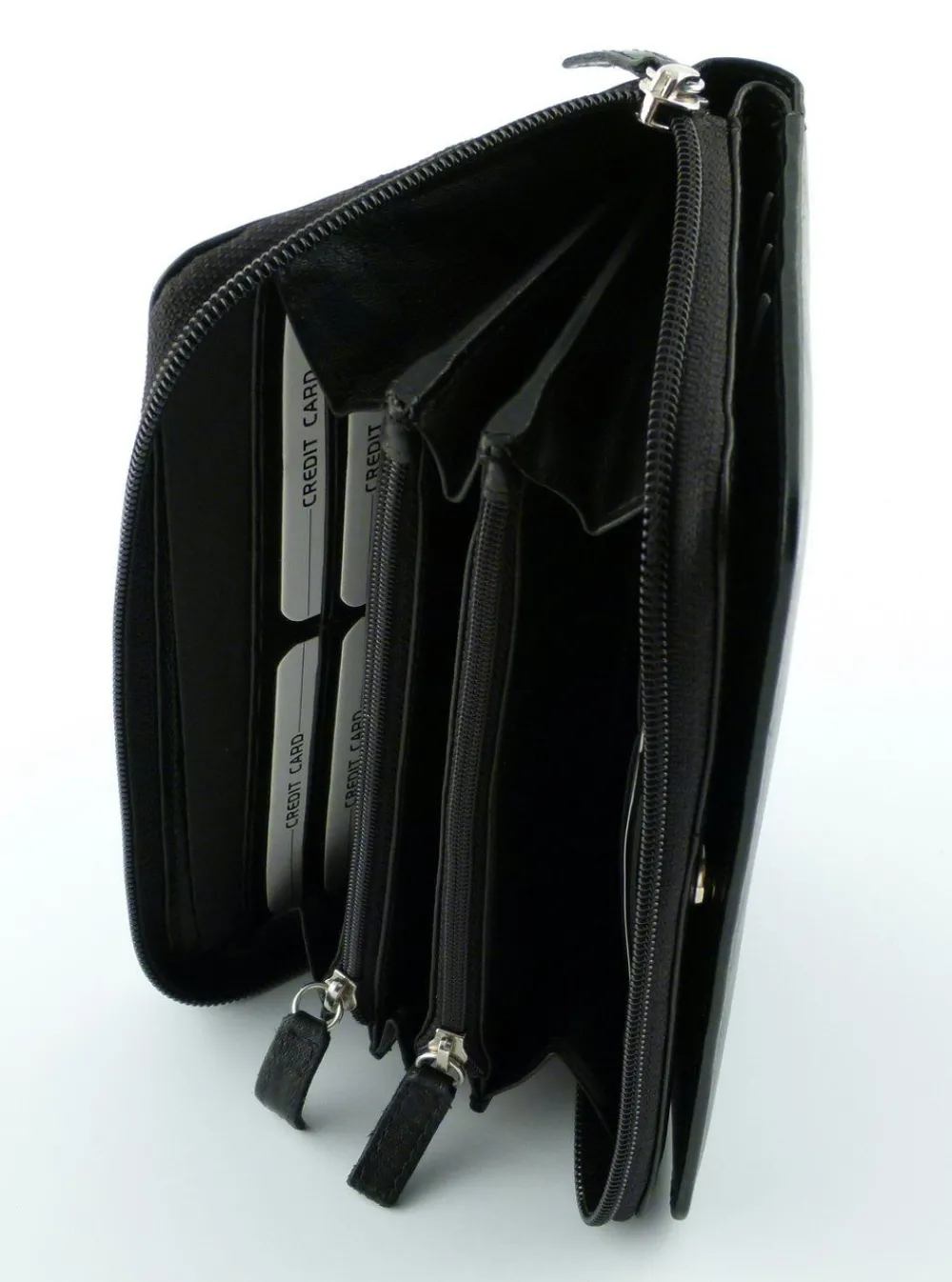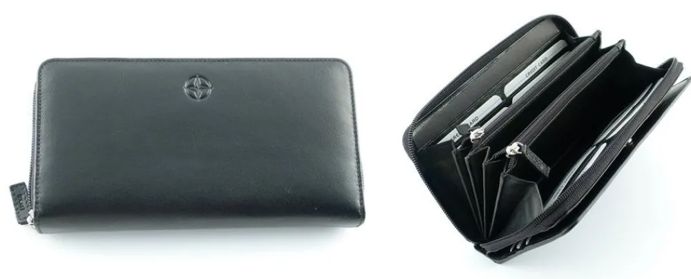 Il portafoglio è strutturato con una tasca chiusa da lampo, organizzata con divisorio e porta carte di credito, ed una patta frontale per i documenti. Il portafoglio è molto apprezzato per la qualità della pelle e della lavorazione e per l’accessibilità a banconote e monete.