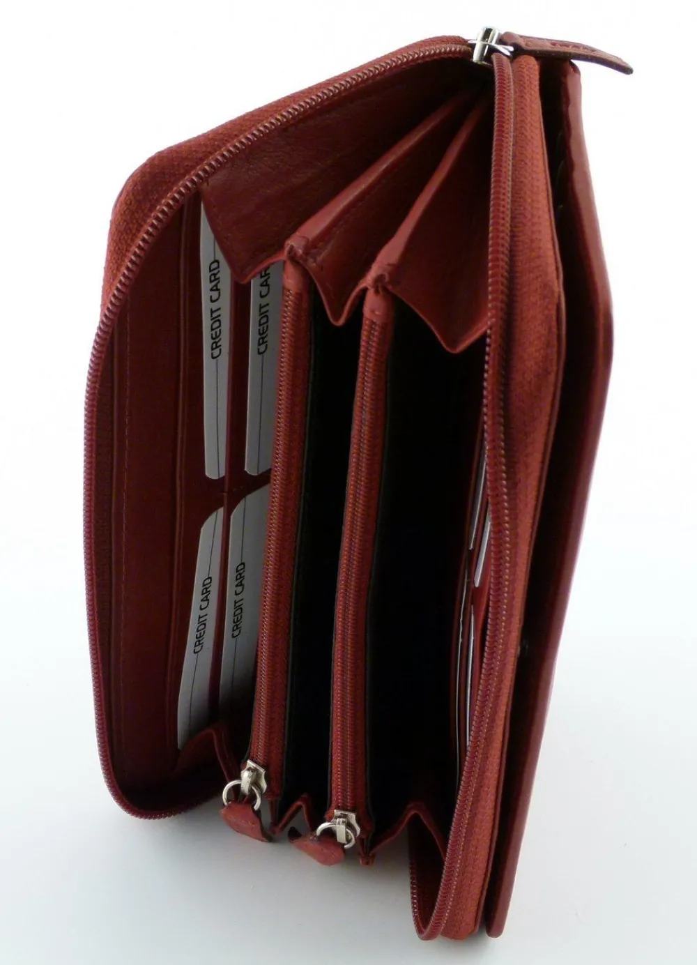 Il portafoglio è strutturato con una tasca chiusa da lampo, organizzata con divisorio e porta carte di credito, ed una patta frontale per i documenti. Il portafoglio è molto apprezzato per la qualità della pelle e della lavorazione e per l’accessibilità a banconote e monete.
