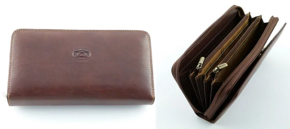 Pratico e funzionale portafoglio in cuoio fiorentino, di grande qualità e valore. Attrezzato con una tasca per banconote e moneta, chiusa da una sicura lampo, ed una patta per i documenti e le carte di credito. La misura consente di mantenere le banconote distese e assicura una grande capienza