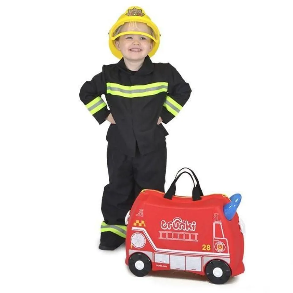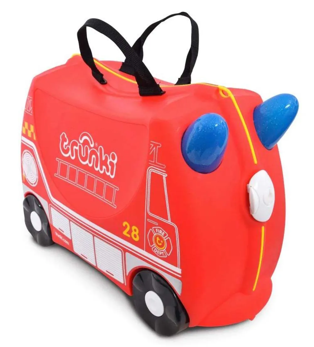 Valigia cavalcabile per bambini Trunki. Valigia 4 ruote realizzata in robusto polipropilene ultraleggero, maniglie superiori, tracolla amovibile regolabile in lunghezza, che può essere utilizzata per l’utilizzo come borsa o per trainare il bagaglio. Ganci di chiusura con sicurezza. Interno con tasca e nastri per bloccare l’abbigliamento. Misura consentita come bagaglio a mano. Garanzia 5 anni.