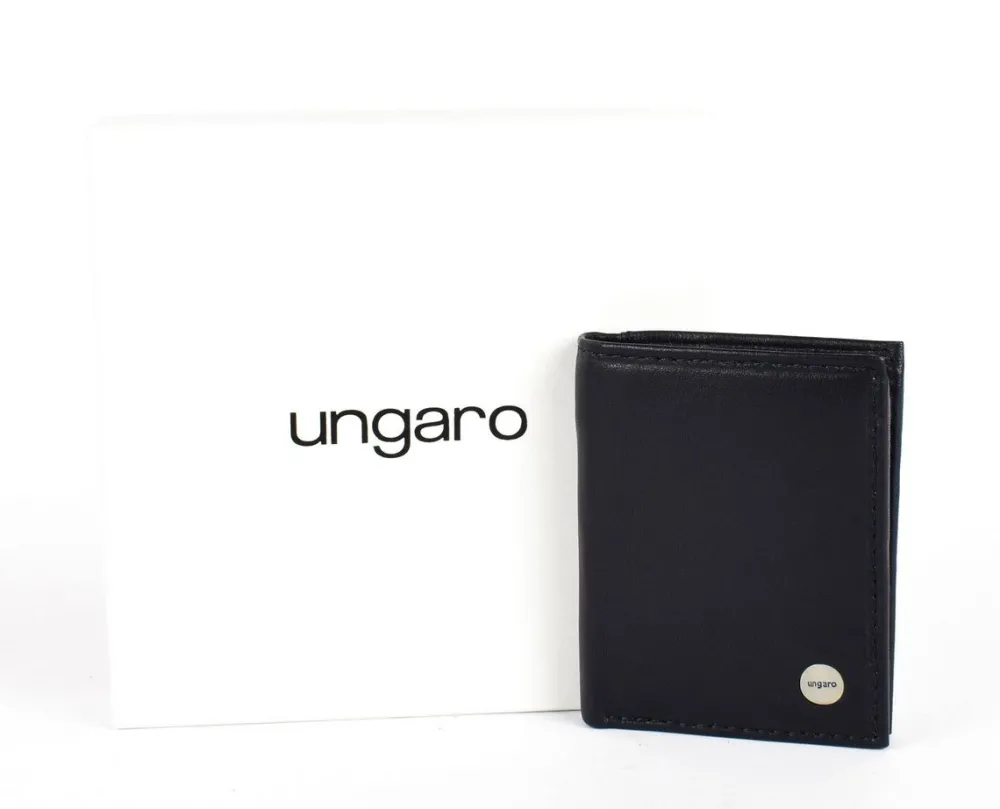 Portafoglio uomo piccolo sottile Ungaro Toulouse 09. Realizzato in pelle di alta qualità , con vano porta carte di credito e vano portabanconote. Chiusura a bottone. Logo frontale.