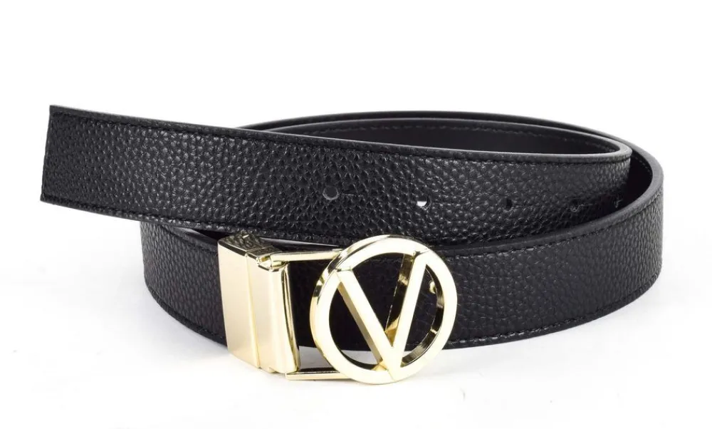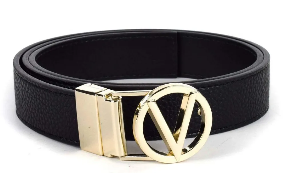 Cintura Reversibile Valentino Bags Roof. Cintura realizzata in materiale sintetico di alta qualità . Lunghezza cintura 110 cm, facilmente regolabile (la fibbia può essere sganciata per accorciare la misura – girovita massimo all’ultimo foro 100 cm). Fibbia metallica.