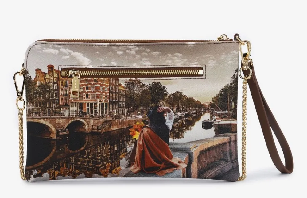 Borsa a mano e tracolla Ynot? 303. Borsa a mano e tracolla realizzata in robusto PVC stampato con rifiniture in pelle. Ampia tasca principale chiusa da zip, tasca interna chiusa da zip e tasche per piccoli oggetti. Tracolla a catena. Laccio da polso amovibile.
