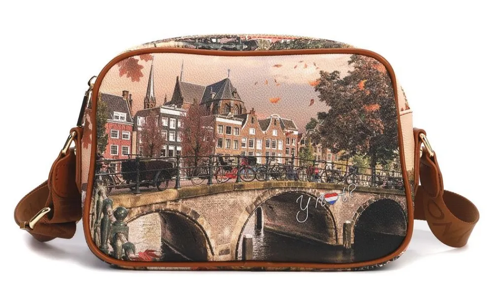 Borsa a spalla Ynot? 396. Borsa due manici realizzata in robusto PVC stampato con rifiniture in pelle. Ampia tasca principale chiusa da zip, tasca interna chiusa da zip e tasche per piccoli oggetti. Tracolla amovibile regolabile in lunghezza.