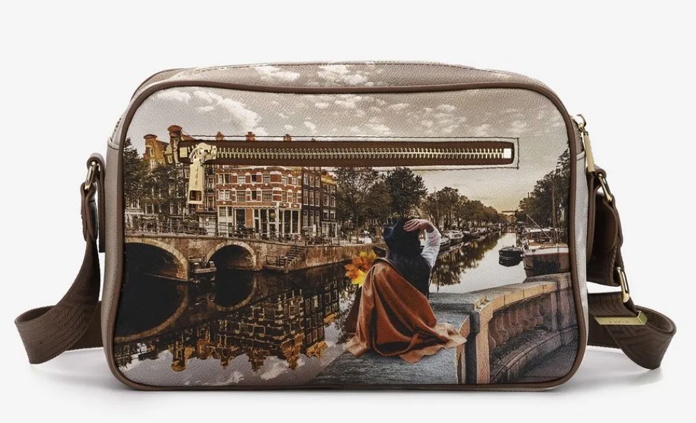 Borsa a tracolla Ynot? 331. Borsa a tracolla realizzata in robusto PVC stampato con rifiniture in pelle. Ampia tasca principale chiusa da zip, tasca frontale chiusa da zip, tasca interna chiusa da zip e tasche per piccoli oggetti. Tracolla regolabile in lunghezza.